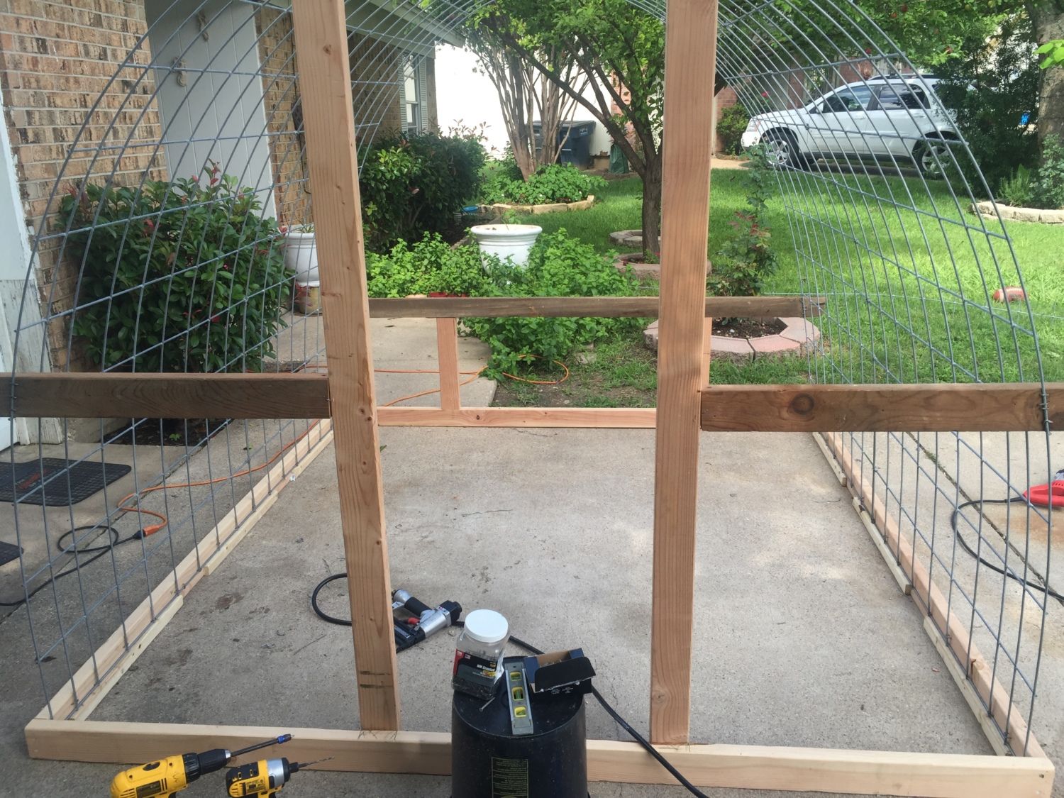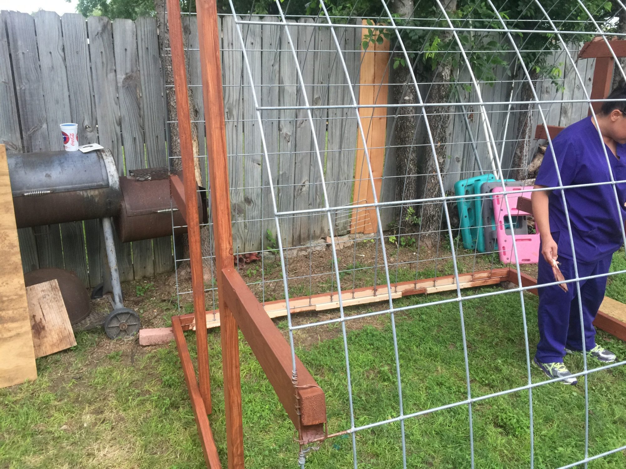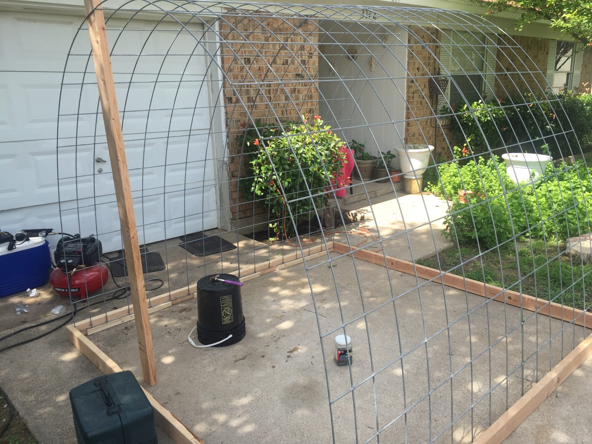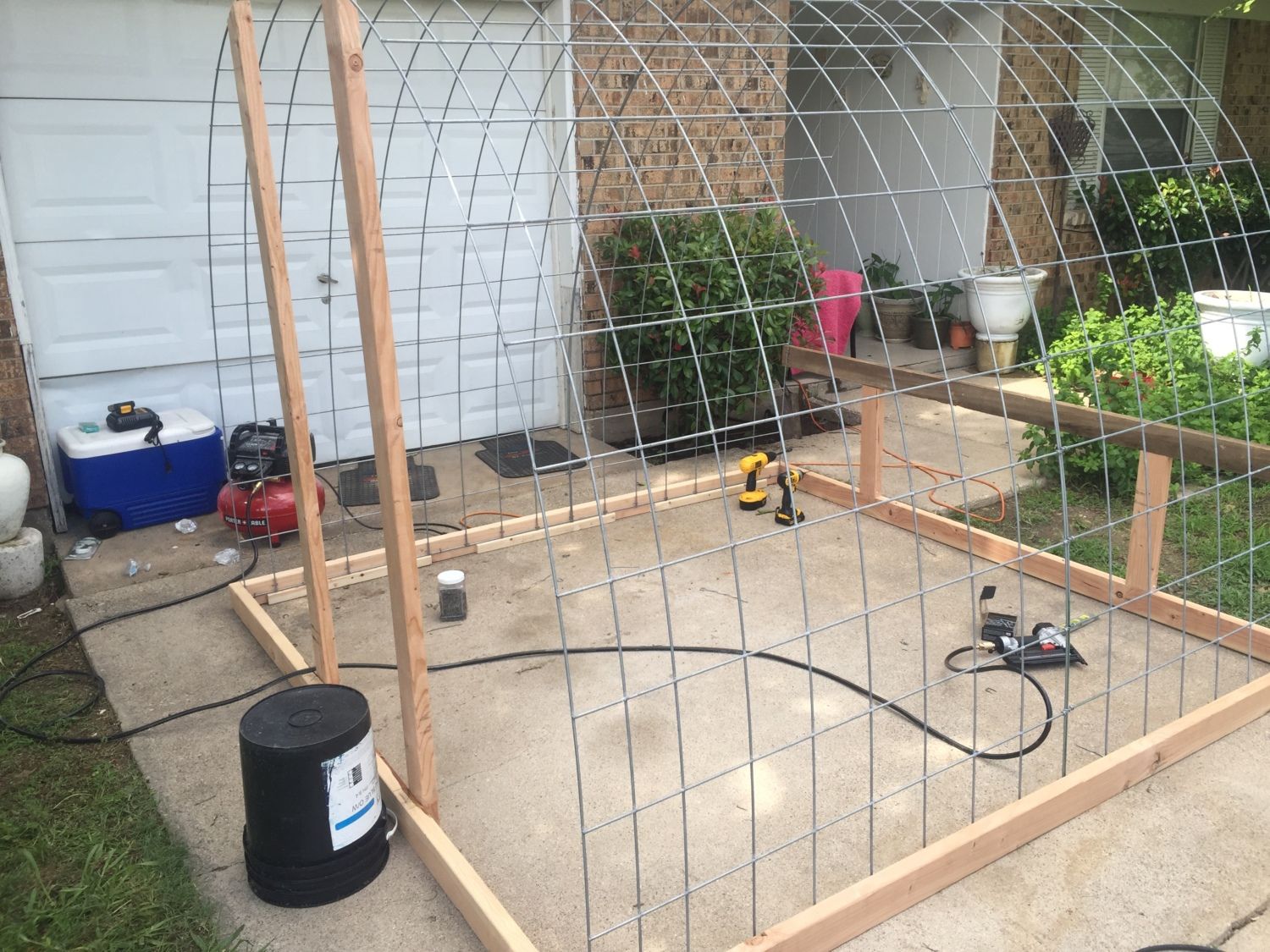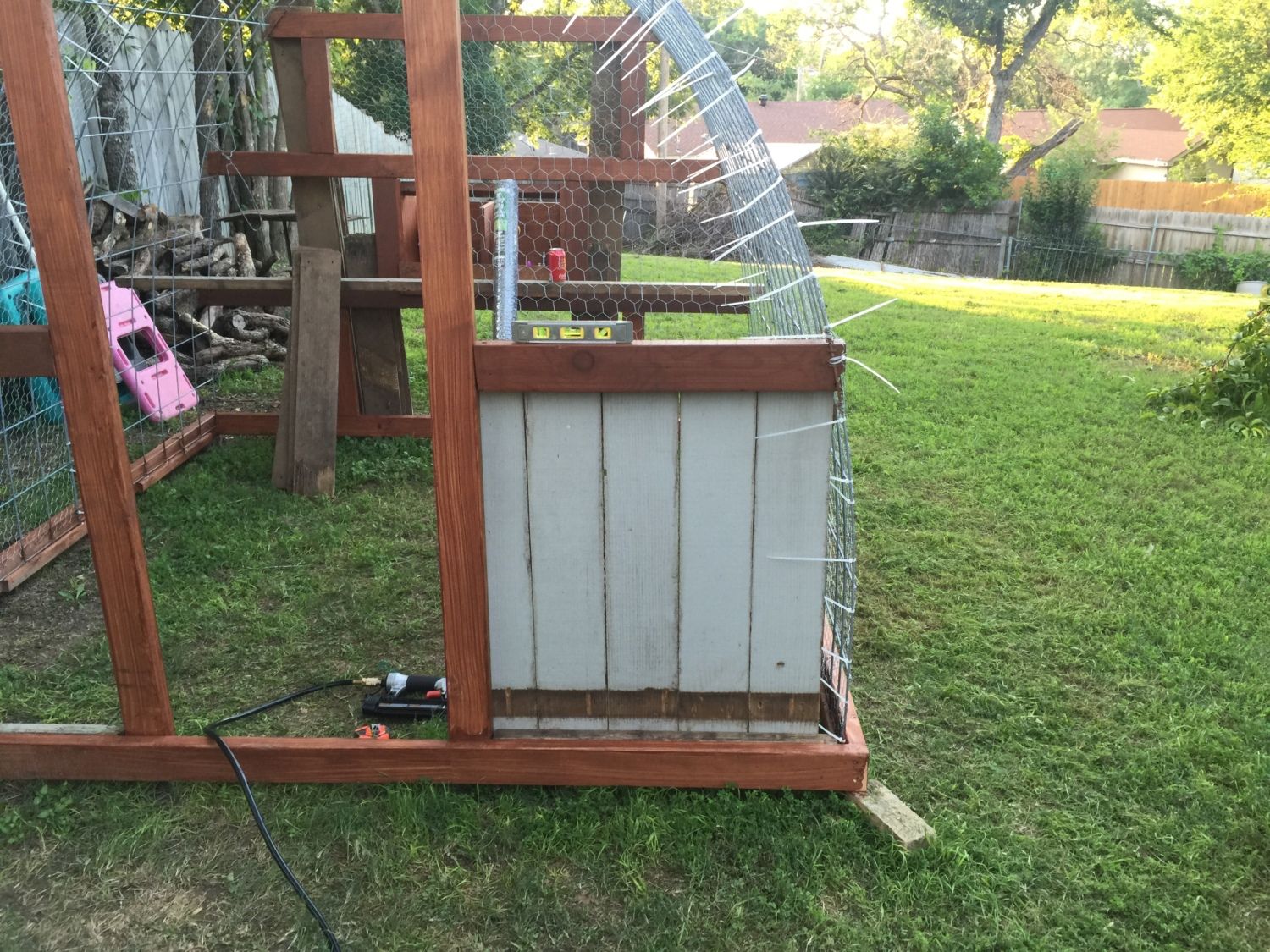 Looks like a job well thought out and executed. Sturdy hoop coop and run. You likely need to run some 2x4 welded wire or 1/2" hardware cloth skirted out about 18" and buried or covered with something (some people use paver stones) to make sure nothing can dig under the wall. Also, chicken wire is something raccoons can reach through and they, plus other predators, can rip it pretty easily. Might want to consider 1/2" hardware cloth run up a couple of feet on the walls.