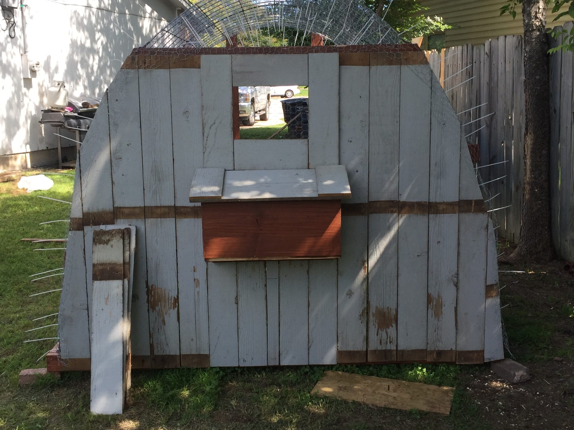 Lastly, coons climb VERY well and have dextrous front feet. They can EASILY open a hook. I suggest a lockable barrel bolt where you have the twist board. And once that is installed, try to pull the door open on the corner on that side. If you can pull it out even an inch or so, a coon can possibly squeeze in. They WILL find any small opening if it exists.