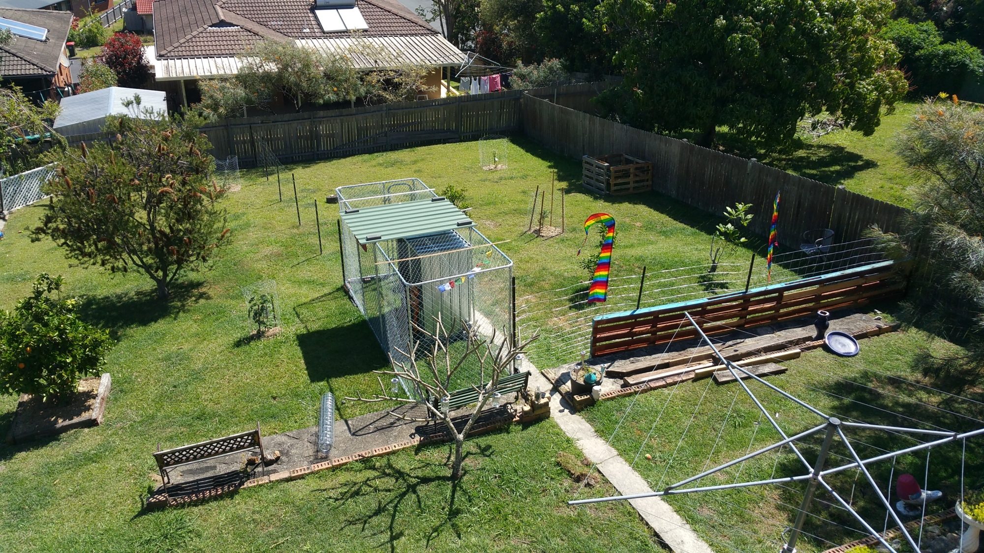 Yes the fenced off top right corner is exclusively for the girls. We only got them 2 days ago so keeping them locked up for a few more days so they're a little more comfy in their surroundings. Our only predators are our dogs - greyhounds so the coop is made from a chain link wire dog run. We also have large eagles so the coop is fully enclosed. We will keep the dogs inside when they are in the chook paddock in the afternoons for extra security