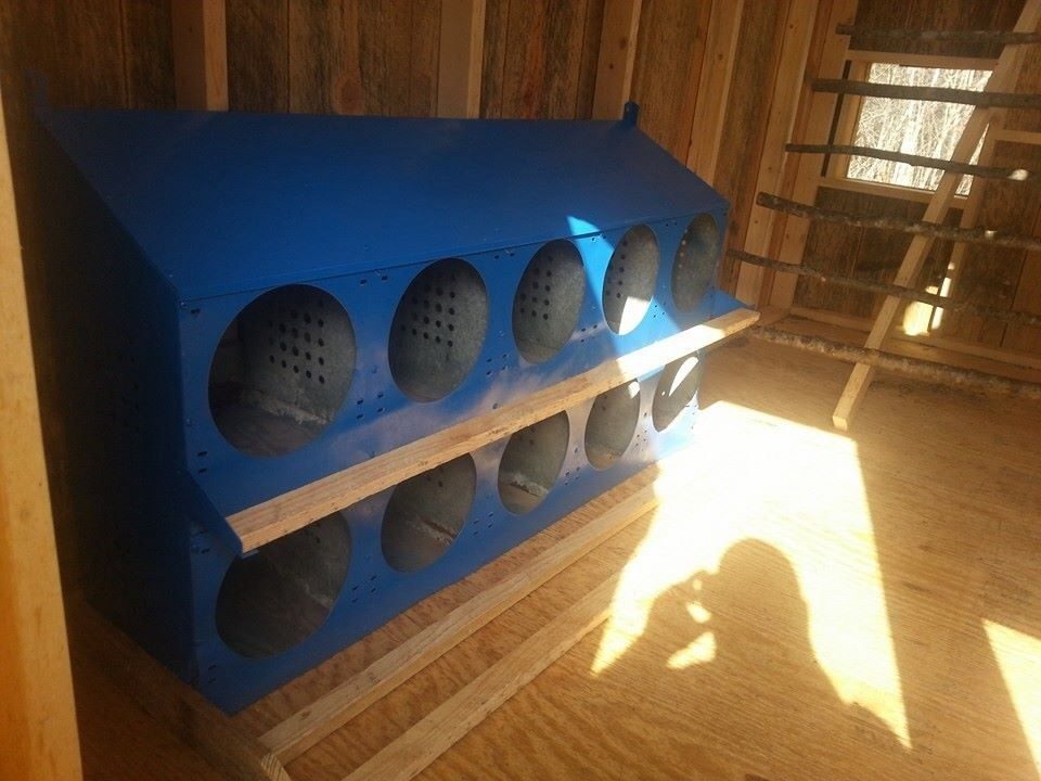 I was thinking the same thing about the steepness of the roost. There appears to be plenty of room to "scoot" the roost out and lessen that....chicken poopies...eek!Nice job!! I love those metal nest boxes, wish I had room for some.