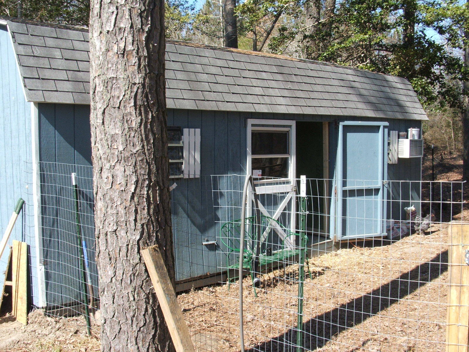 here is my first coop. we have 10 rir in there now,9 hens and 1 rooster. we free range them few hours every evening. it started as a 4x6 then I added on 4x8 I will soon put a roof on the addition.