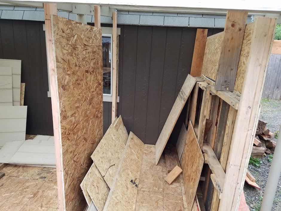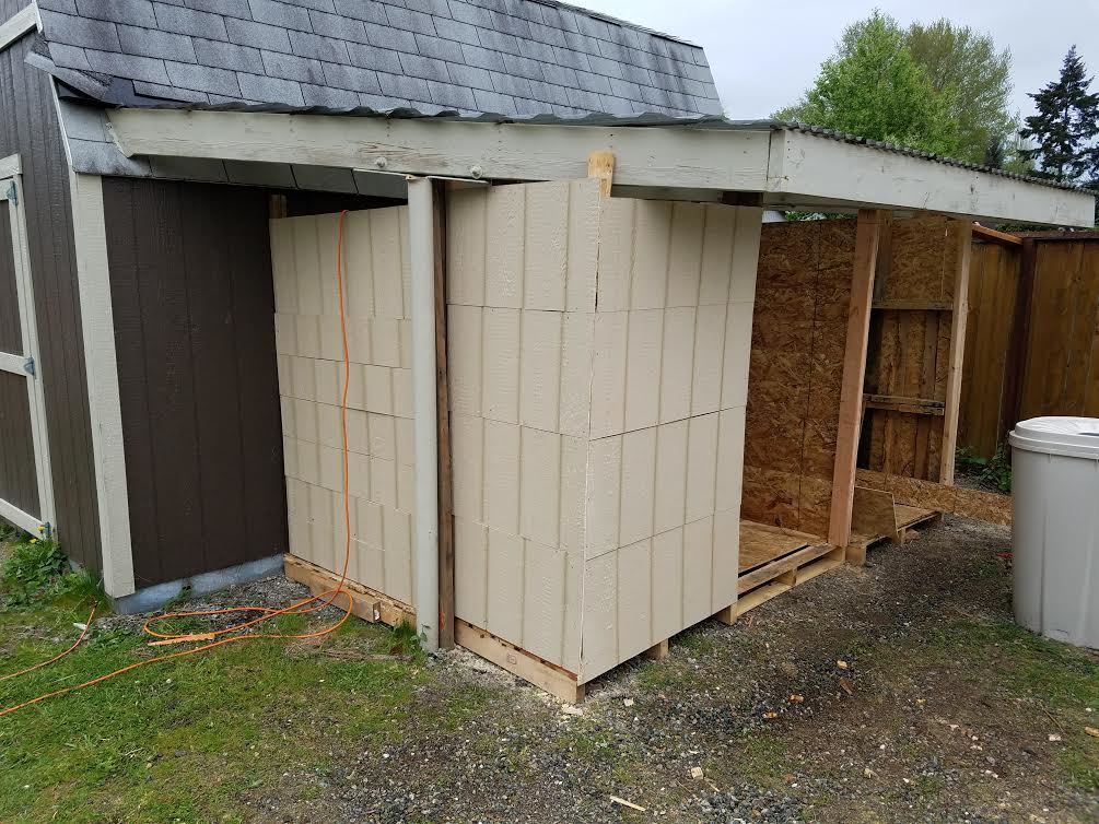 We made this coop right alongside the shed in our backyard under the awning adjacent to the shed. All the siding is strand board siding I picked up for free at a local portable shed company. The floors are pallets, obtained for free from our local newspaper company and I took strand board and overlayed it on the pallets to complete the floor. The siding was nailed to 4 pallets and then erected for the walls. I have recently put up the chicken wire fencing and constructed the door to the run. Still need to put up the doors on the coop itself (access to the hens sleeping area and where laying boxes will be) and also finish laying the linoleum down on the floors which I also obtained for free at a local flooring store. All in all I have spent only about $30-40 on this coop, basically nails, screws, hinges and locks.I will post the finished product soon as the girls will be out of the brooder in about![]()