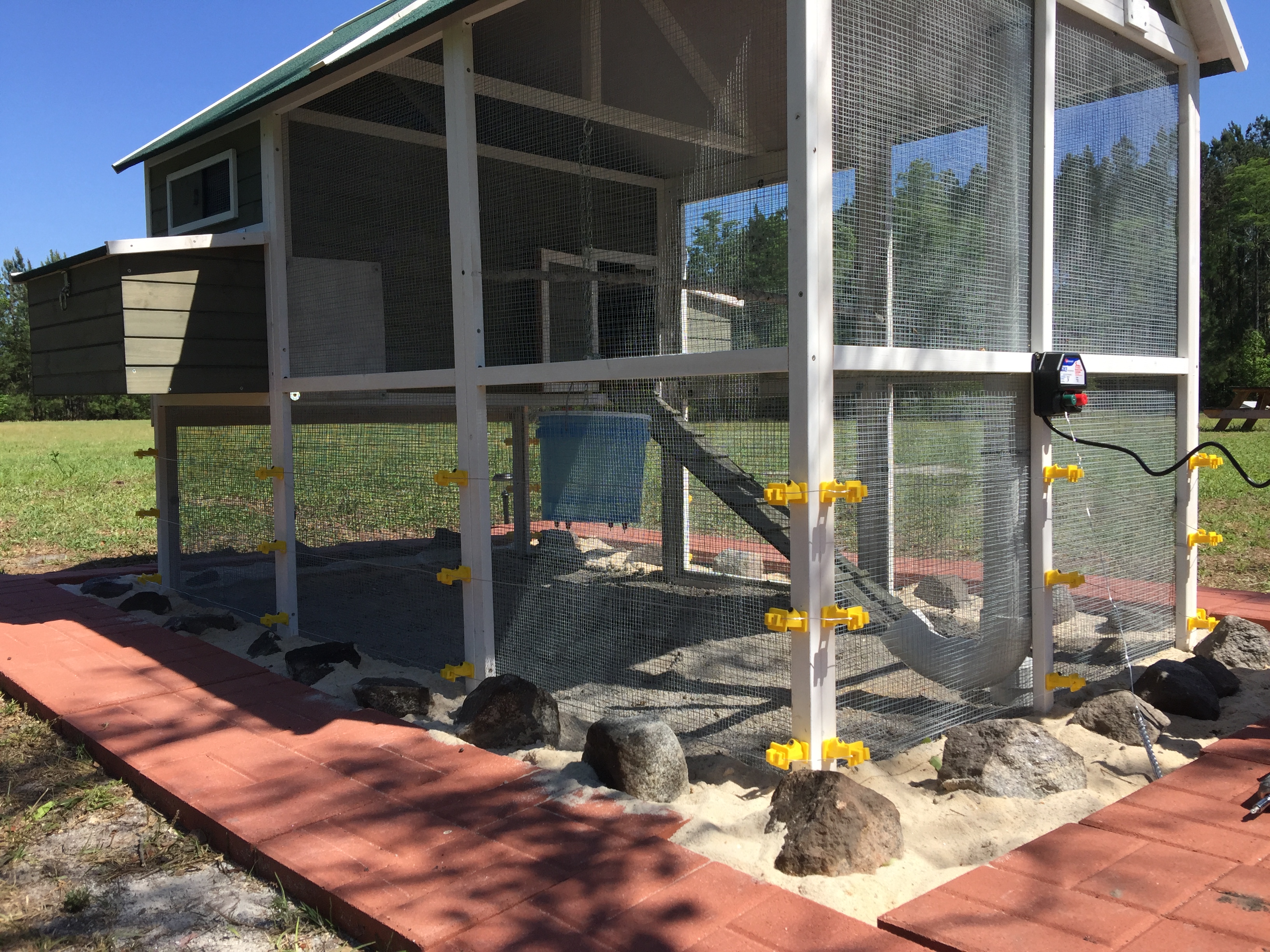 Chickies grow fast! Hurry, hurry! Haha! Having a good roof over a coop is EVERYTHING! For 5 years we had to keep tarping our first little coop so with the new coop we put a patio roof over it.