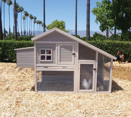 Larger Amazon housing appeared for sale after we purchased our already assembled heavy custom-built coop at our local feed store - it was 4' x 6' overall and delivered by the feed store right to our spot in the backyard - no hammering, no building, no screwdrivers - already built! I liked that the nestboxes didn't stick out beyond the outside walls to get wet in the rain. We propped the coop up on blocks a few inches so we had more head room. It's too small to house chickens in it 24/7 so we let our girls free-range the backyard with lots of low-built lean-to's for them to dive under from the Cooper's Hawk and to snooze under during the day. We also found a doghouse at a thrift store for added hiding. These low shelters have kept our girls safe from the Cooper's Hawks for these last 3 years and we keep recycling wood planks to use on cinder-blocks as shelters all around the yard. Nothing fancy but protects the girls.