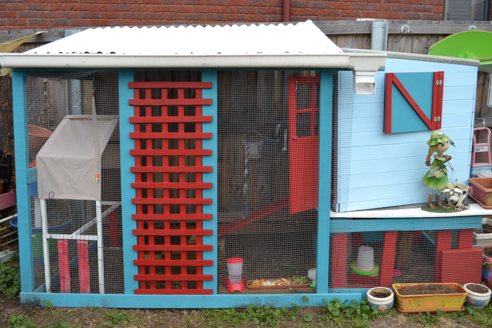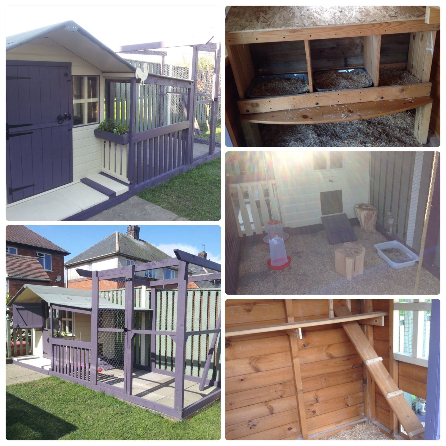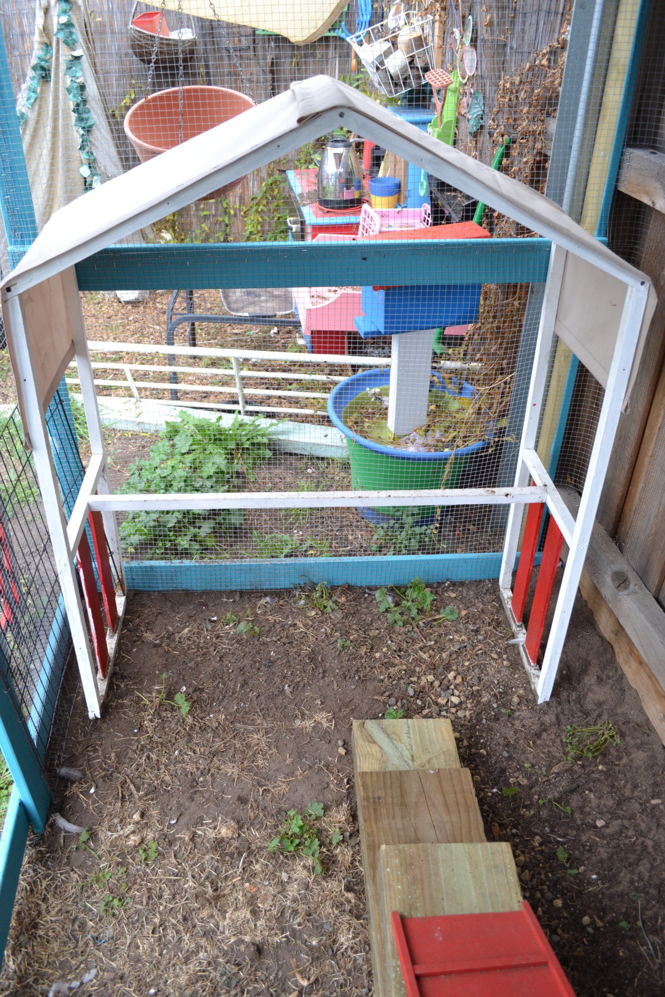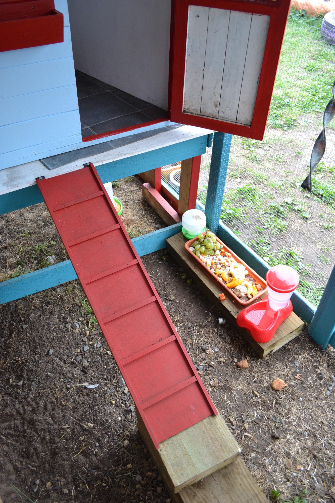 That ramp is too steep (maybe put something about a foot high under the low end of the ramp), not enough cleats (should be 6 inches between cleats) and needs to go the front edge of the roost board rather than how you've got it.Here's ours we finished this week. The coop is a second hand Wendy house which was rotting so has been stripped back and we have used the bare bones. Everything else is recycled or gifted items, it's the biggest thing we have designed and built ourselves. Probably the wrong place to ask but can anyone help with my roosting issues. I built one 4" x 1" flat side up, 3" in the air and I'm putting the birds up there on a night (they all came from places where I think they only slept on the floor), the two LF seem to be getting it and got down on their own today but the two orpington bantams have to be put up and got down on a morning. I built a ladder but they just look at it confused! I thought about building a lower one but then it will be on a level with the nest boxes....help. They both liked sleeping under the nest boxes but I was told they may get mites sleeping on the floor.