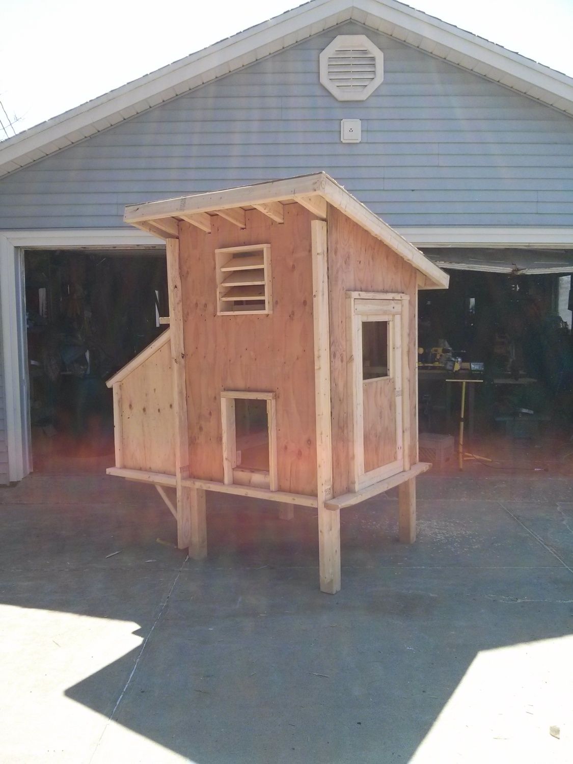 Since we have a couple Silkie bantams we made our ladder with steps up the ramp about 4 inches apart - I've seen some make their ramp steps 3 inches apart which would be good if there were chicks or juveniles. Your steps look widely separated and the ramp is too steep and a tad narrow for smaller fowl. These are all things that deter smaller birds from wanting to use it. I speak from our experience with the Silkies. Making a new ramp is an easy fix for you to make it longer/wider with closer steps to allow a gentler slope up/down. We had to construct a new ramp with our coop to make it less steep and much wider to give both LF and bantams a feeling they wouldn't fall off. Also, new things in the coop make the chickens wary. Sometimes it takes 2 or 3 days for them to get used to the strange new thing in the coop but they eventually realize it can't hurt them and they start using it. Maybe someone else has input too.Here's ours we finished this week. The coop is a second hand Wendy house which was rotting so has been stripped back and we have used the bare bones. Everything else is recycled or gifted items, it's the biggest thing we have designed and built ourselves. Probably the wrong place to ask but can anyone help with my roosting issues. I built one 4" x 1" flat side up, 3" in the air and I'm putting the birds up there on a night (they all came from places where I think they only slept on the floor), the two LF seem to be getting it and got down on their own today but the two orpington bantams have to be put up and got down on a morning. I built a ladder but they just look at it confused! I thought about building a lower one but then it will be on a level with the nest boxes....help. They both liked sleeping under the nest boxes but I was told they may get mites sleeping on the floor.