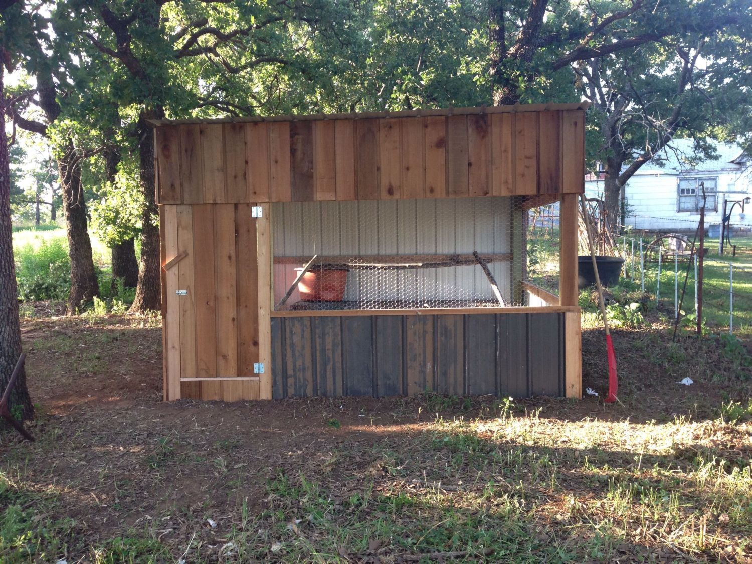 My chicken coop. We added heavy welded wire behind the chicken wire.