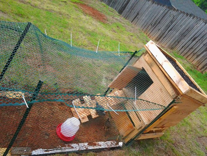 Might need to think about wrapping the entire coop in 1/4 to 1/2" hardware cloth if you are not going to close it in until the cooler months. Racoons etc will rip thru this chicken wire.. I inherited one with this on it and just put a second layer on it...didn't take off the chicken wire. Make sure you bury your wire at ;least 12" on the perimeter. Don't want to have to go out to pick up pieces of you ladies because a neighbors dog, cat or other predators. I want to make a coop out of pallets and I really like your design....