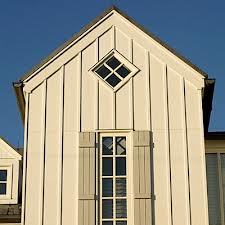 From "about.com" Architecture: "Board and batten, or board-and-batten, describes a type of exterior siding or interior paneling that has alternating wide boards and narrow wooden strips, called battens. The boards are usually (but not always) one foot wide. The boards may be placed horizontally or vertically. The battens are usually (but not always) about 1/2 inch wide. These battens are placed over the seams between the boards." An example of exterior use would be: