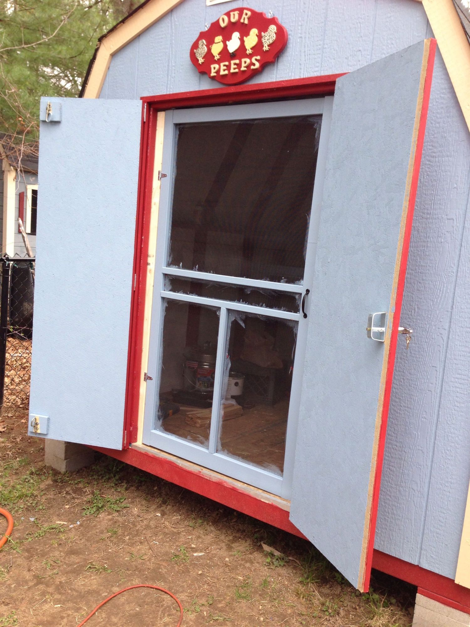 Quote: Could I cut out the insides of a regular door, put hardware cloth on it and use as my screen door for my run??? Anyone have ideas??