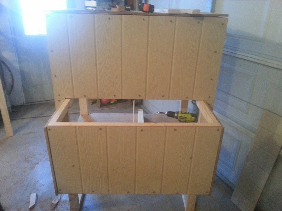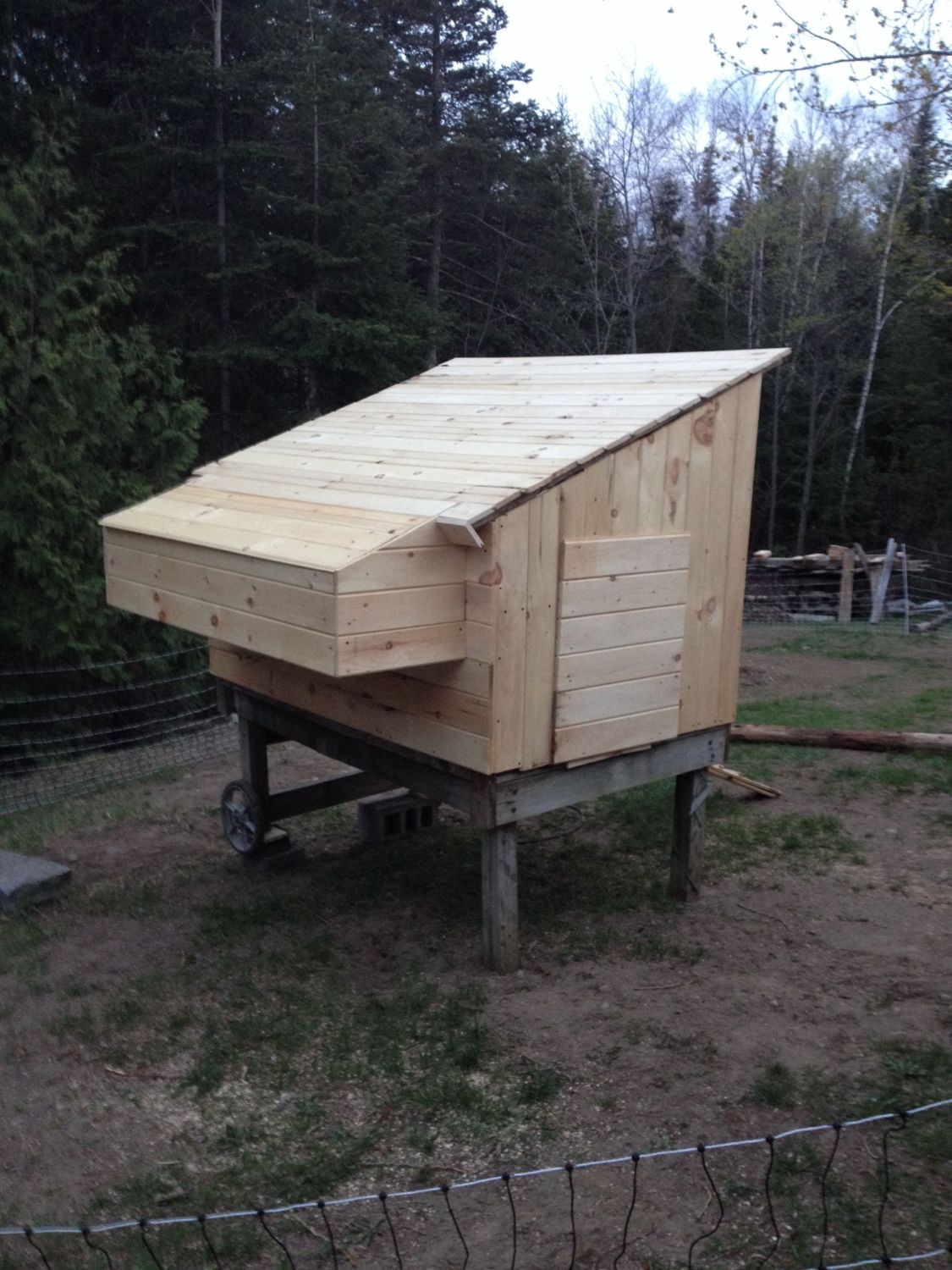 we have moved our 6 young peeps 3 wks old, out to the shed in a fenced in box on 4 sides plus the top has little screen doors that you pull up, then we have the next size peeps 16 that are 10 weeks old, in our screen house with a small area fenced in so they can get outside, looking for another camper to fix into a coop like the last one, which has 21 hens and 1 roos.