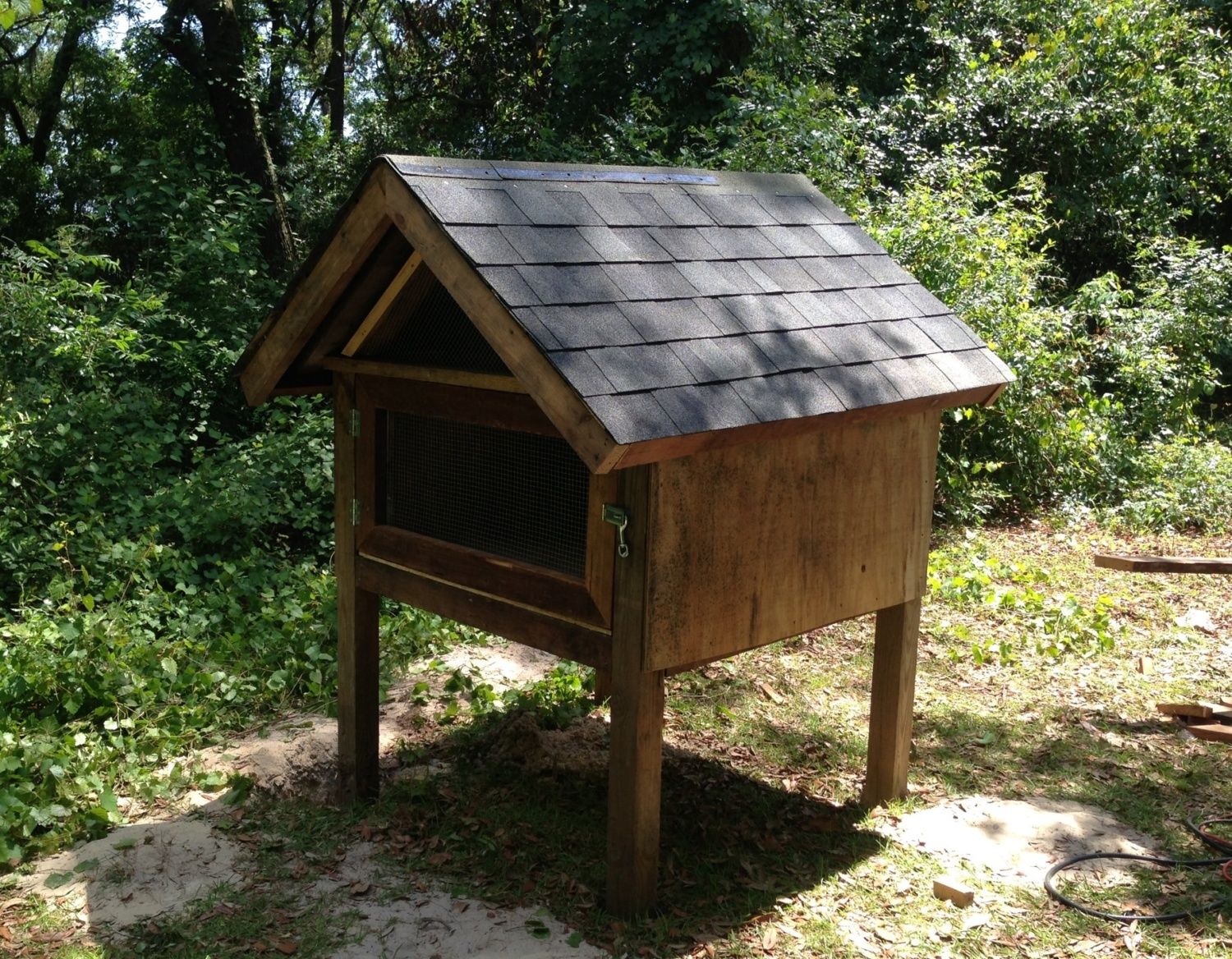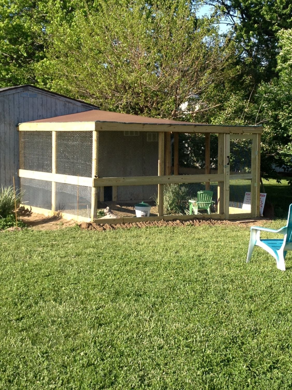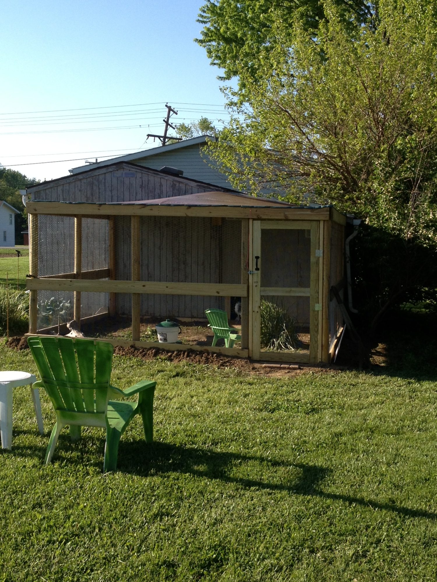 Thanks Sylvester! We moved in a year ago and have been busy doing a lot or repairs to the home (100 yr old bungalow). The garage and home were recently fumigated and a fresh coat of paint is next on the agenda. Because of the layout of our property and local ordinances regarding where the coop can be located on our property we are relegated to this spot. My plan is to make the coop easy to disassemble so if it ever has to be moved or shifted out of the way all I'll need to do is remove a couple of brackets & screws and viola. The shade is provided by a huge Lychee tree so treats should be raining down on them soon