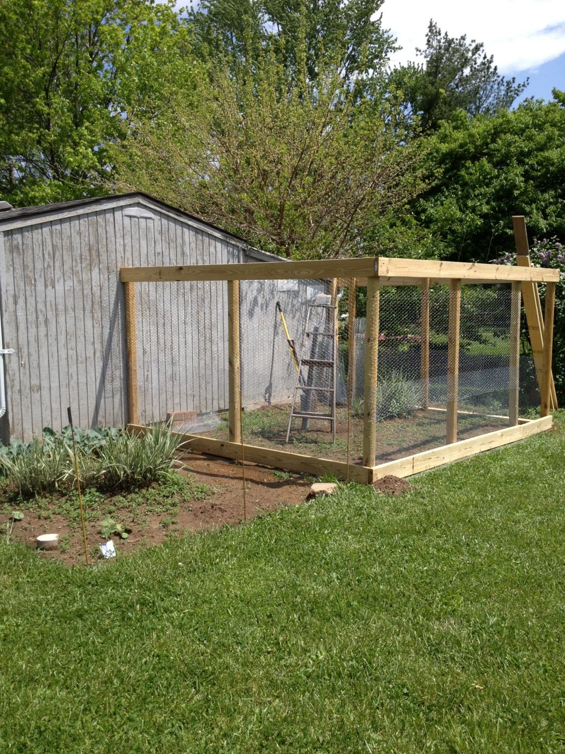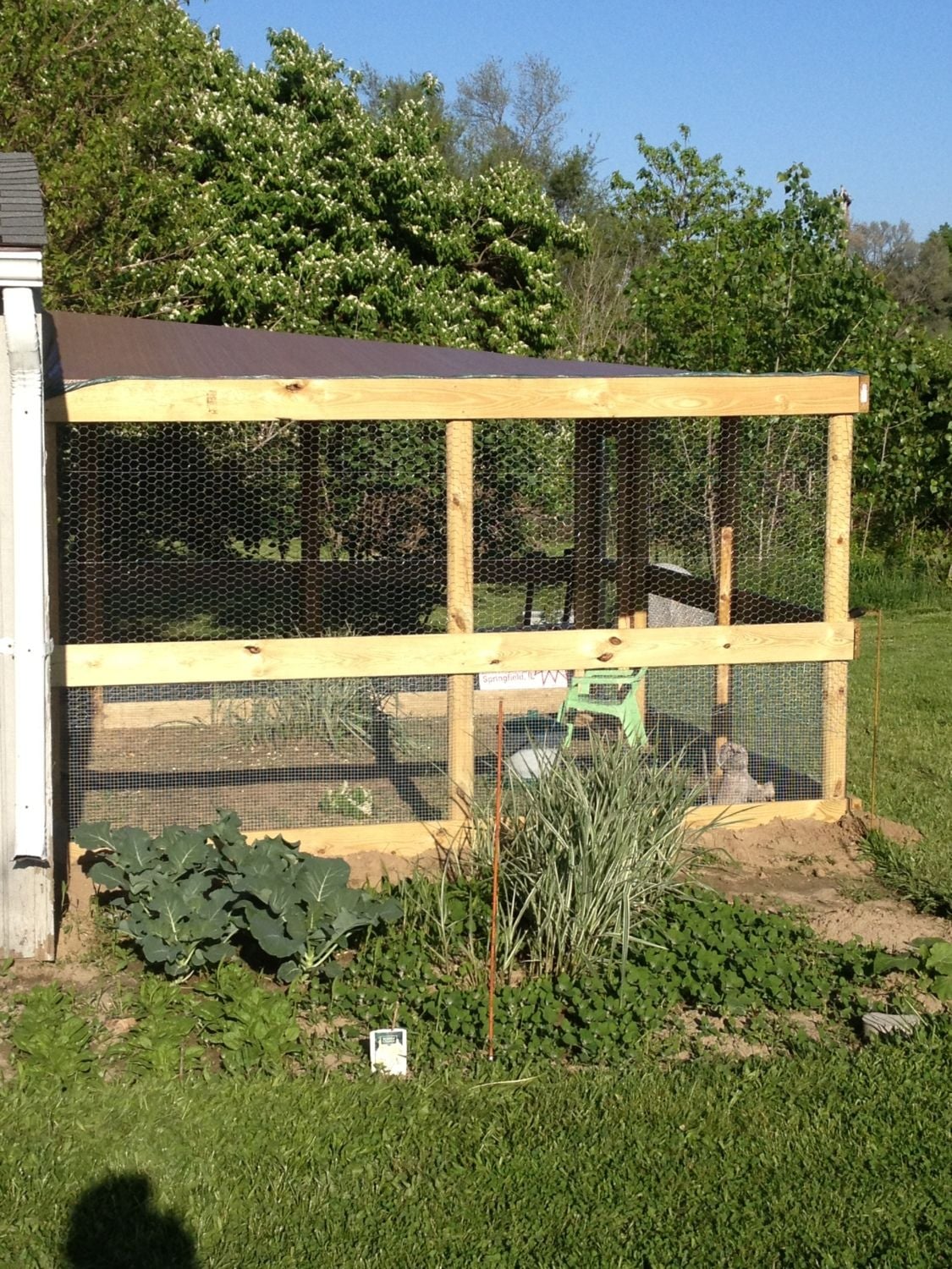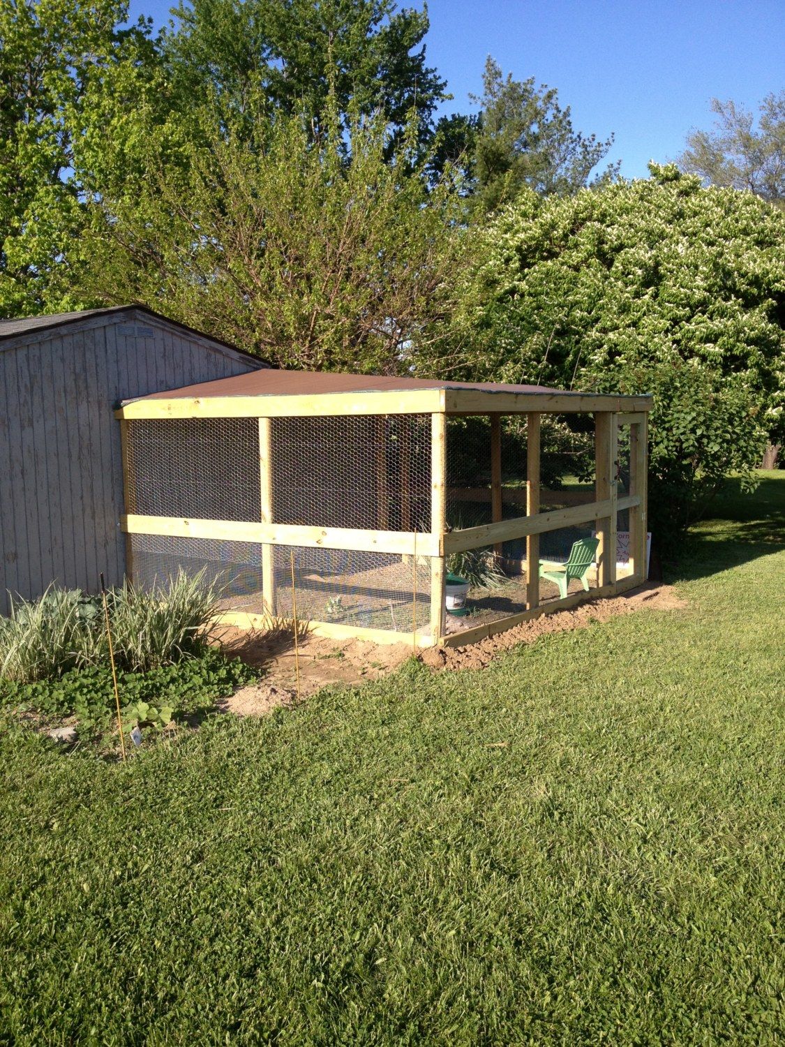 When we moved in our yard was bare except for one dying climbing rosebush. When we started chickeneering we added a veg garden (fenced off during summer) a popup canopy for shade, some lean-to's scattered around the yard for hens to snooze/hide under, a recycled doghouse, and some potted citrus trees. We won't plant nut or sweet fruit trees because it attracts too many rodents and wild birds into the yard plus we don't get squirrels that way either. All the neighbors have chopped down their old trees too. Hard for the squirrels and raccoons to get around without trees to hop from yard to yard. We are planting some more rose bushes since the chickens seem to like to snooze under them. They miss the old dead climbing rose bush we pulled out! They even snooze/hide under the wheelbarrow against the fence. Chickens love to hide when they're not free-ranging.