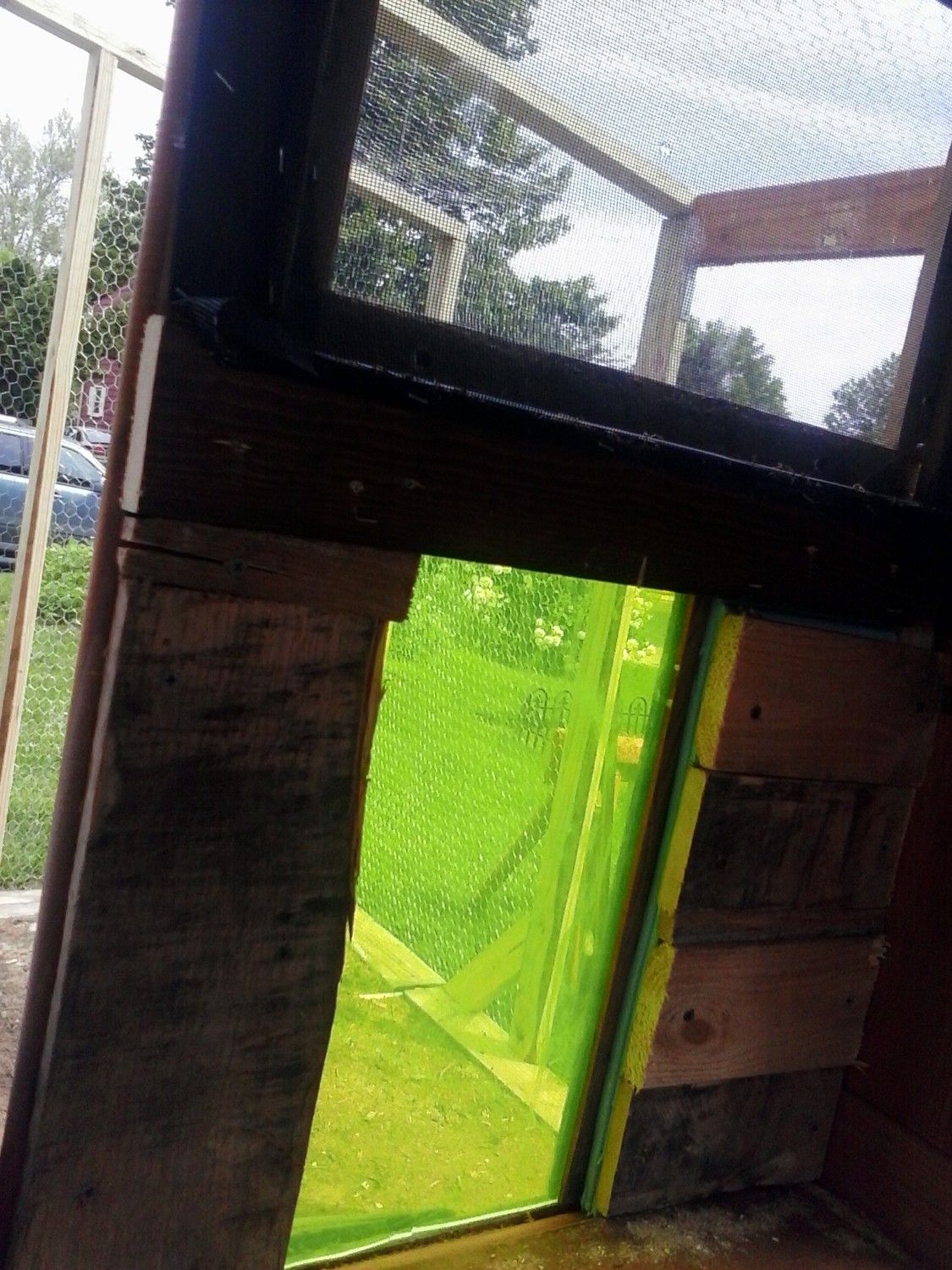 Pop door with window above from roost perspetive: