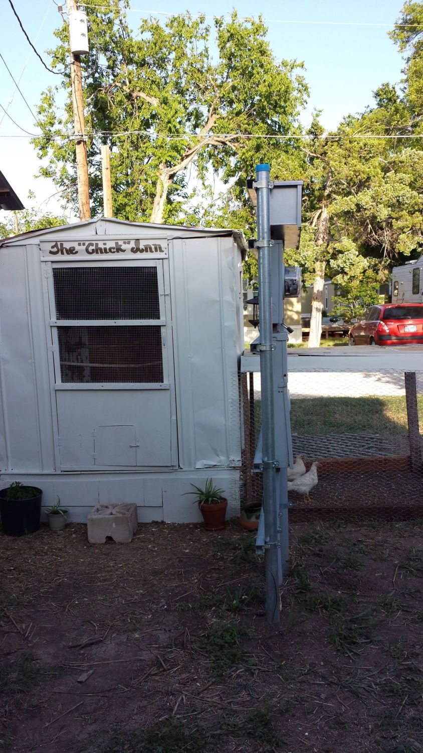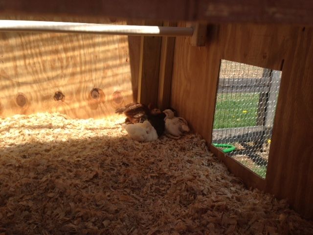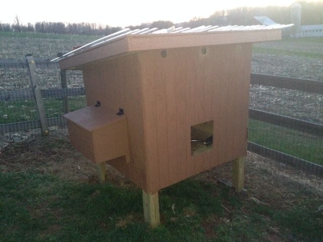 My husband over-engineered a dog house that the dogs NEVER used. This is almost perfect and 6 birds will fit fine. There's even a little roost in there for the chickies. I propped the roof open with a 2x4 for ventilation. Hopefully no raccoons will visit. The chickens have been overnighting up to tonight in a pen in the shed with the doors shut. I have a feeling tonight will be restless.
