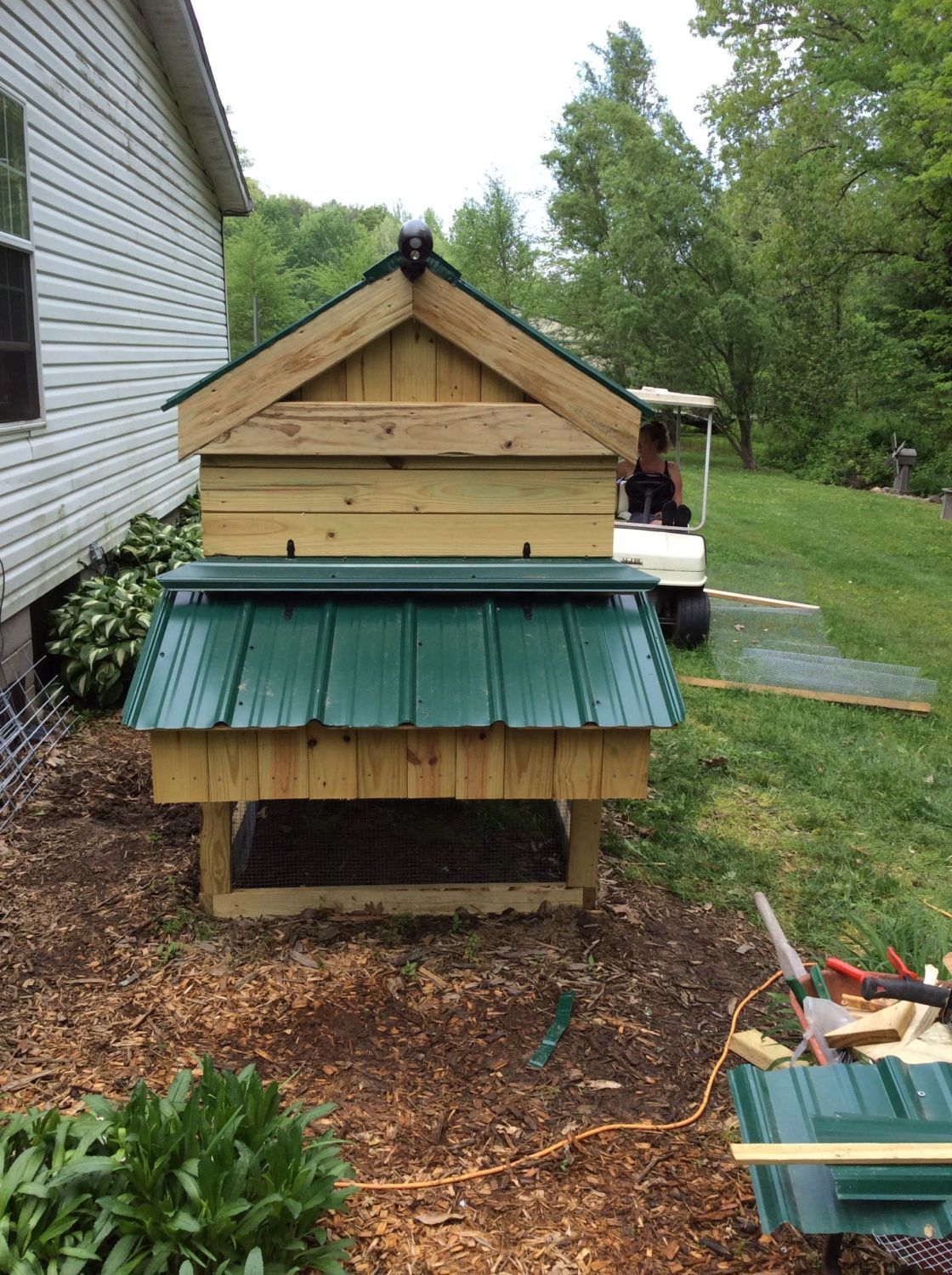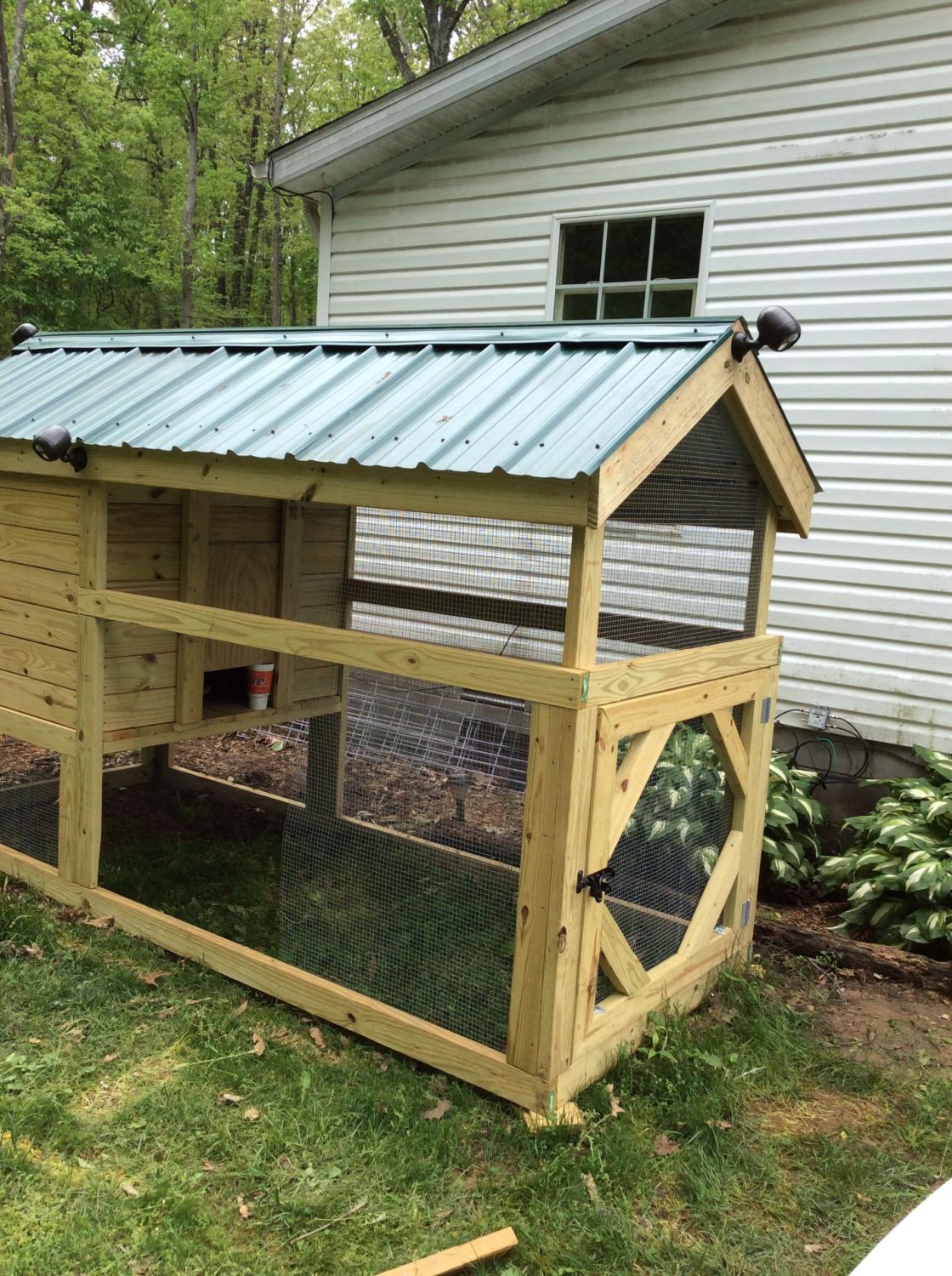 Please cover the walls and ceiling with at least 1/2" hardware wiring....was at my son's last week.....he had just put together a coop from pallets. I love to recycle, however, he didn't get the "holes" covered or get the run covered with anything except poultry (chicken) wire.....lost 6 or 8 that night ! has one little slikie left and about 8 or his little reds left! Can't explain what the predator did to the wiring ... surprised even me and I had known that raccoons and weasels, etc can tear it up. Check out the picture of the poultry wire I'm attaching..... Where it is dug is where I'm having my grandson bury some better wire.... I had also tried to straighten out some of the chicken wire myself to make do until my son could get home...(in military and was away)..![]()