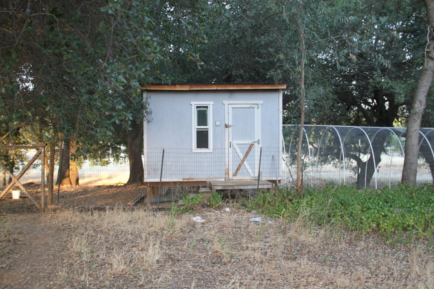 I do not have a lot of natural shade in my back yard I have a tarp over part of the run and the coop shades an area underneath.