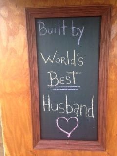 Ya it is crooked but holding everything up yourself and not using a nail gun but hammer and nails and wood that had been outside for years well...... I think I will use that name though if you don't mind:0) still need to put a sliding window with screen in it for ventilation.