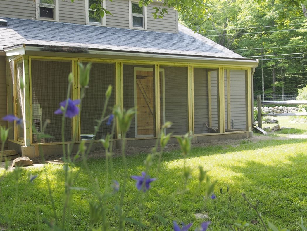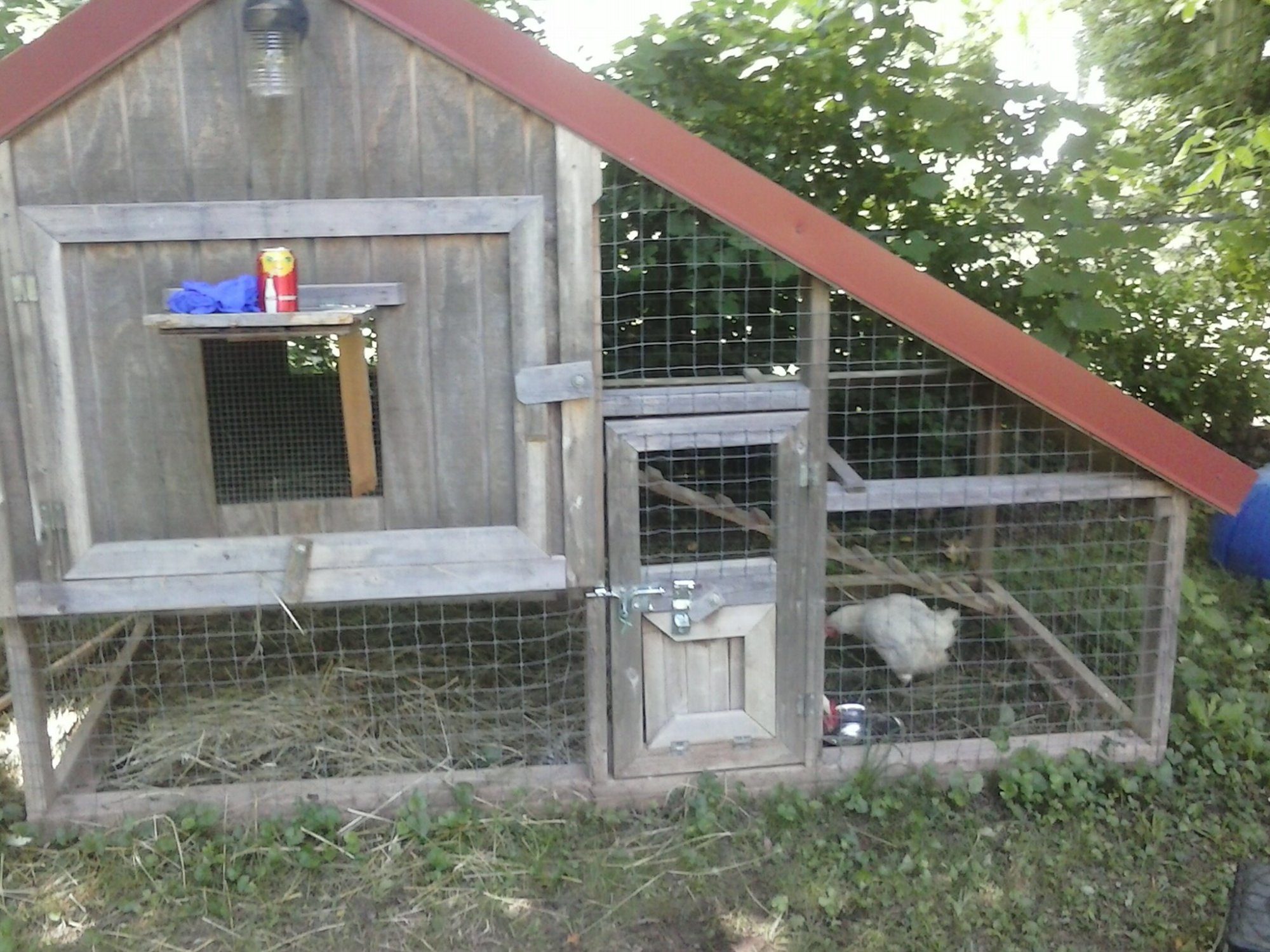 Coop recently finished. Coop is actually inside a shed attached to our garage. Photo shows run which has 2 people doors and an automatic pop door. Hope to plant a "chicken" garden in front so maybe they won't destroy my perennial beds.