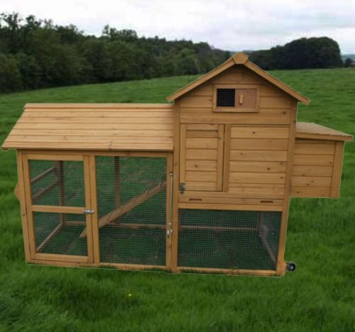 I use tarp over our 4x6 feed-store coop 24/7. Protects from sun and rain damage since our wood is cheap particle wood. Since our coop has 3 open-wire walls we completely tarp the coop except for ventilation on one side. It's good to use the poultry netting from aerial predators but the fence doesn't look strong enough to keep out ground predators. I'm sure you'll invest in more security as you go along. For pre-fab that is one of the cuter coops we looked at a couple years ago. Now if it only was about 3x bigger and stronger-built for our yard!