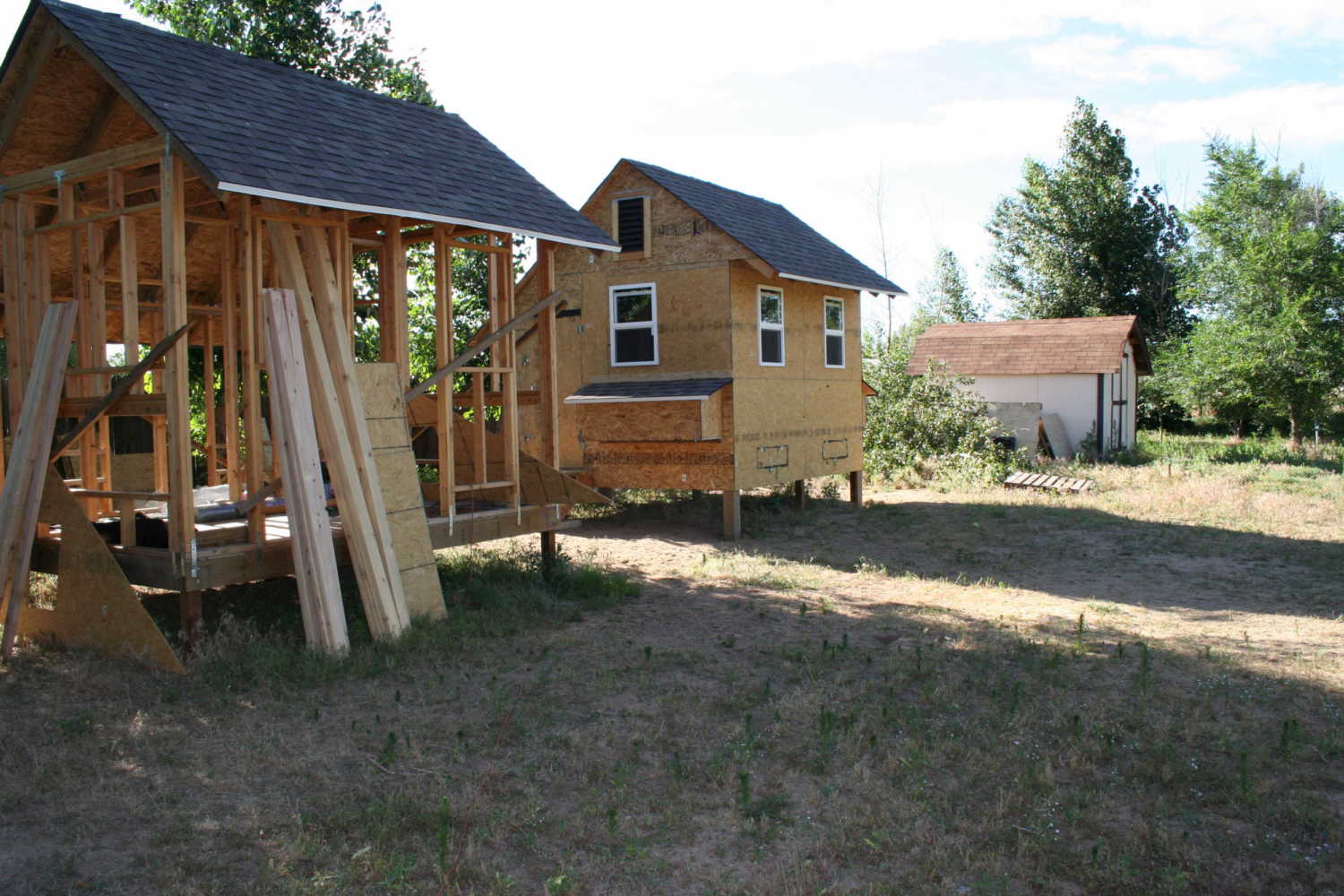Moved the 32 chicks out of their 12 square foot brooder into the first of the 2 coops I'm building. The interior is for the most part finished, but I do need to do the exterior trim, paint, and then build the run, and THEN instal the pop doors for each side. That will all happen over the next couple of weeks, then I'll get to work on completing coop #2![]()