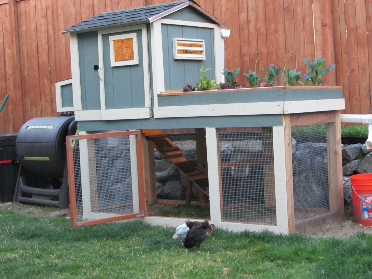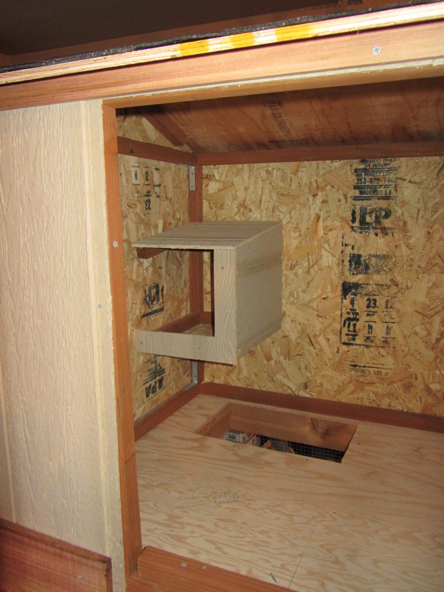 But I decided to build an external one that I could access from the outside. And free up space inside the coop.