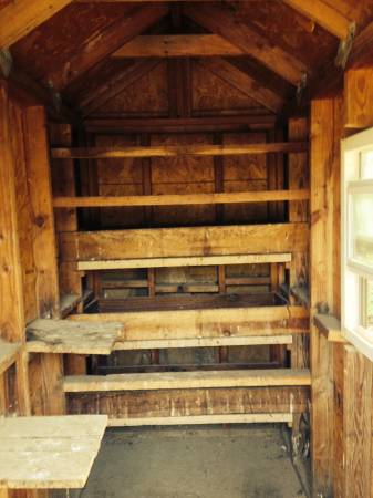 Virkon works wonders when desinfecting. Personally I would gut it though, doesn't look very purposeful to me. But for 500$, I suppose that beats building the shell yourself. And putting in new roosts and nestboxes, desinfecting, painting, and perhaps covering the floor with linoleum or Blackjack 57 isn't that costly once you've got the structure itself. Outside looks to be in pretty good shape.Need advice. New to chicken keeping. We have 5 chickens and when we got them my hubby picked out a ready made coop. It is not big enough for them now that they are almost full grown. I found a shed/coop on craigslist that I am looking at but not sure about it. It is about an hour drive from us. Is it worth it? How do I clean it before I put my chickens in to make sure they are safe from diseases or anything? One thing I can see is that I think it needs more ventilation.