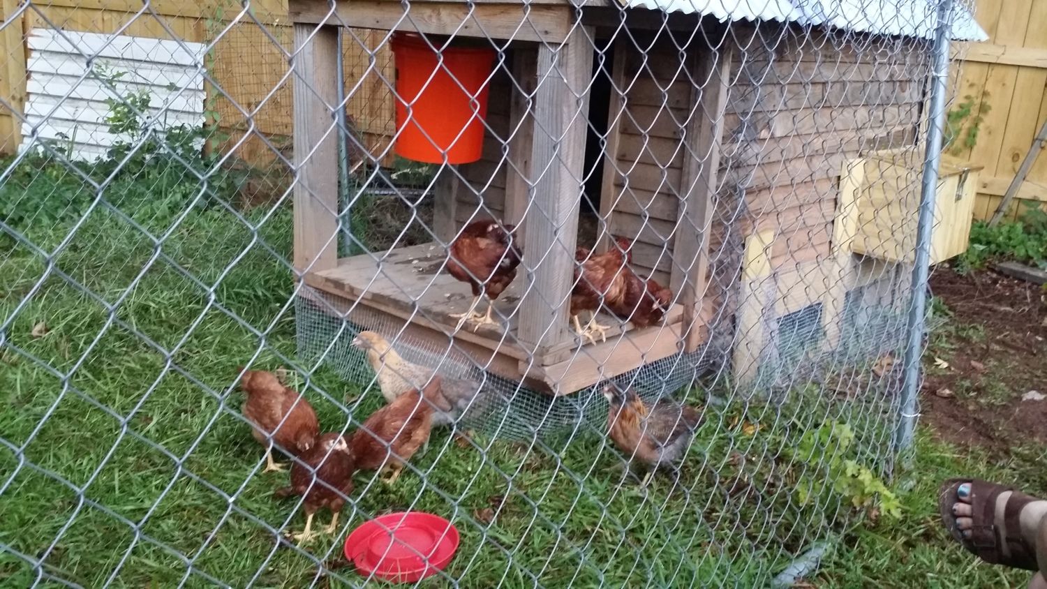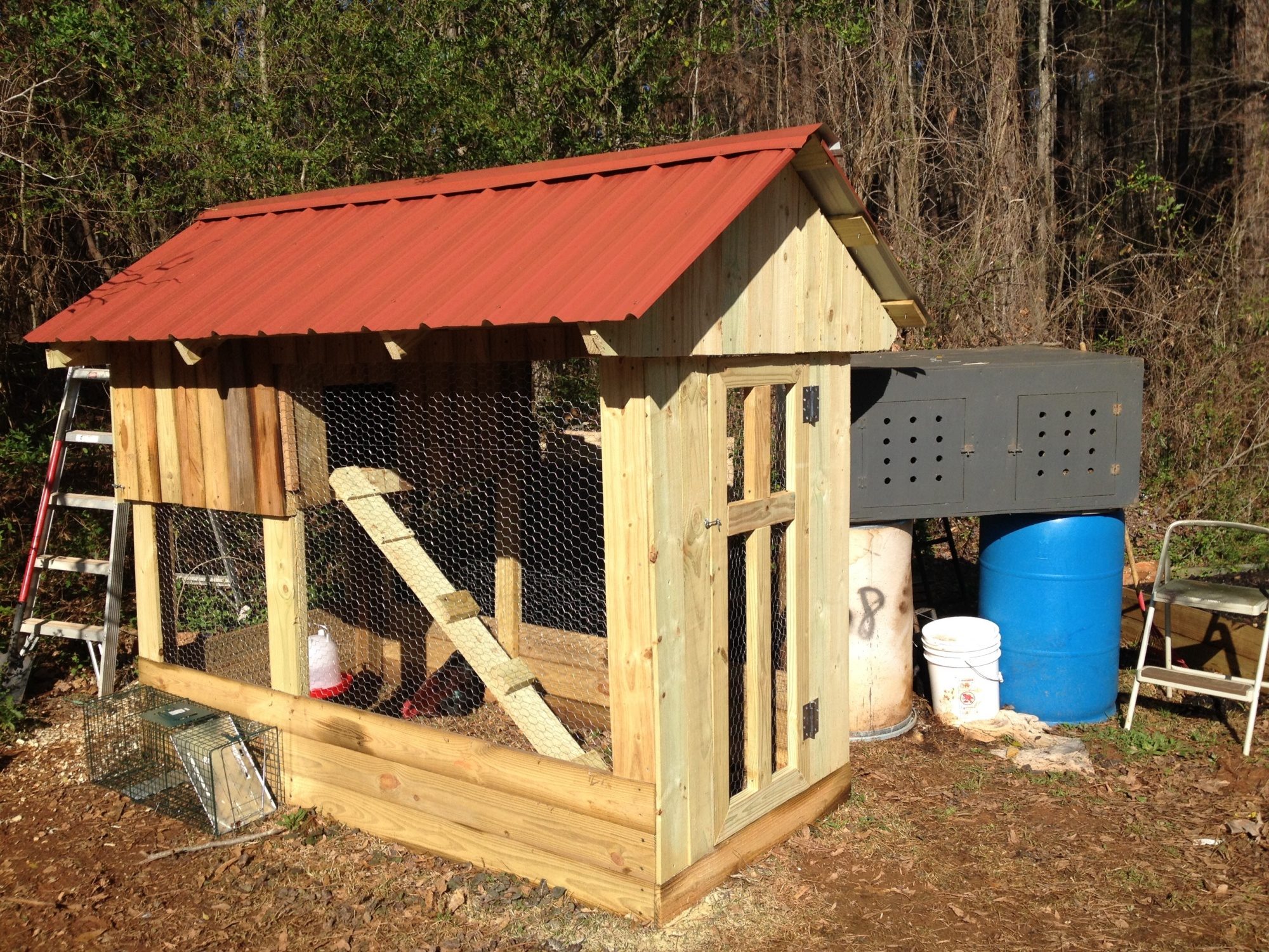 Sorry but I have to get on my "ramp" soap box. Much too steep, the cleats are too far apart and too wide (vertically). Chicken toes and nails don't dig into wood for climbing. Otherwise it looks nicely done.