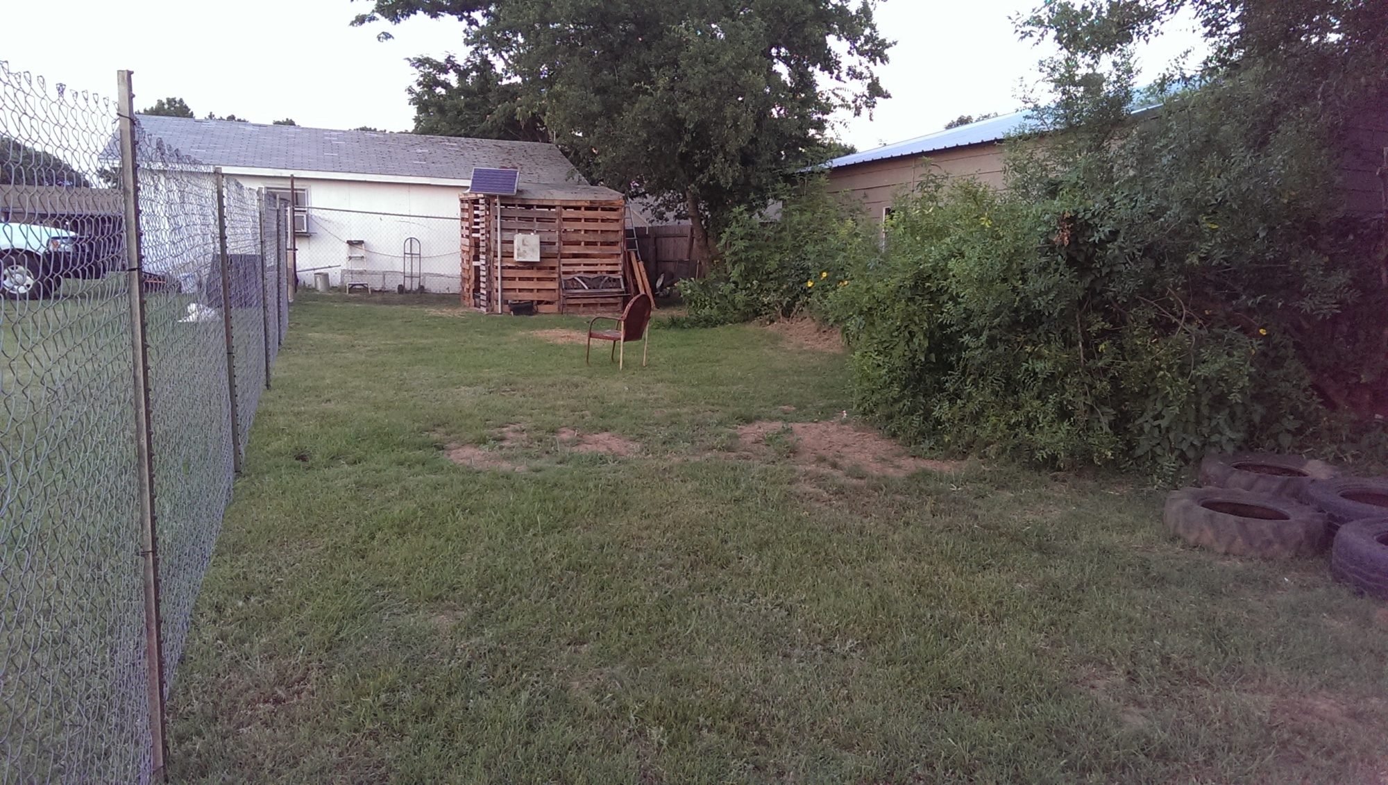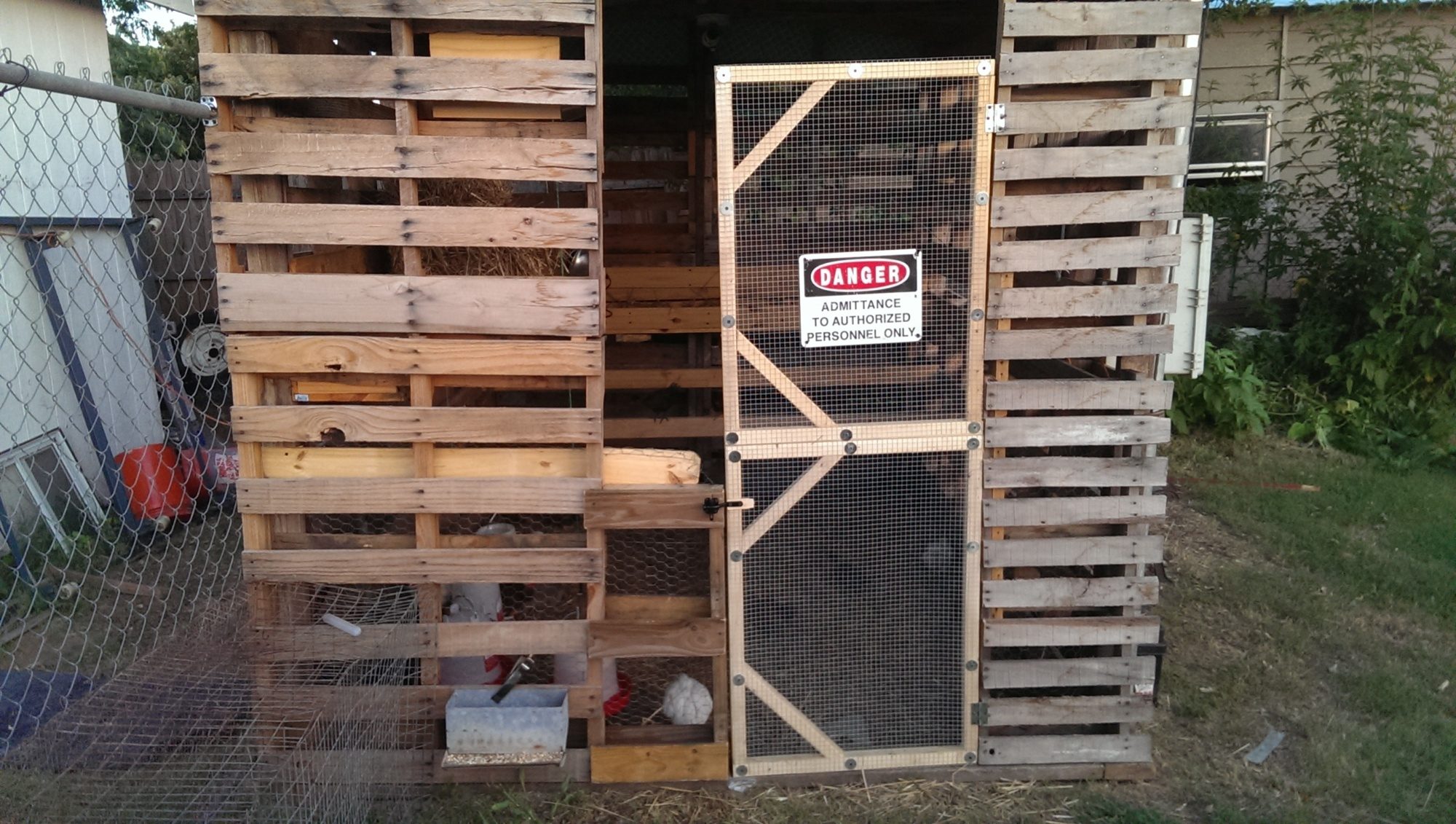 Very strong but crudely built! As much as I would like to make it prettier...I already had to make several cuts just to get this little door in.!! I have a sealer/stain for the wood. Just have to work with my energy level which isn't much now! It really would be funny if it wasn't for the fact that I have never built anything...I'm dealing with antibiotics for RMSP....and this heat is so draining!!
