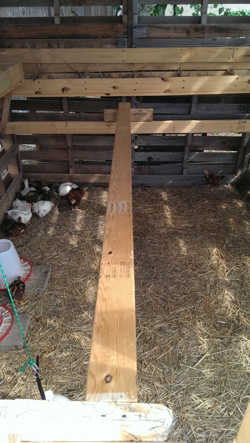 Here is the finished product. I added a "catwalk" for the adult chick we already have and it appears to be working out pretty good. I also made a 70' x 30' run for them when they get bigger. We started out with 25 pullets and have 25 teenagers, one is a rooster.