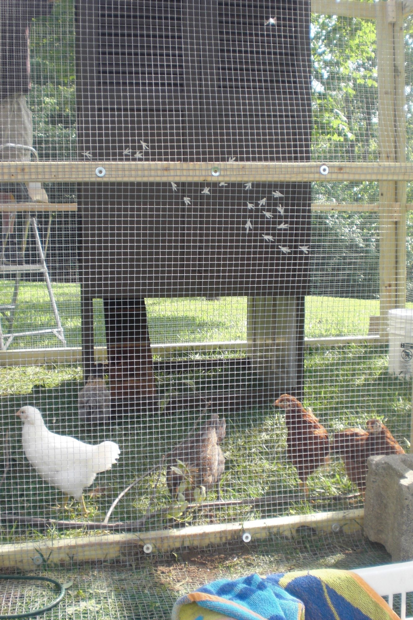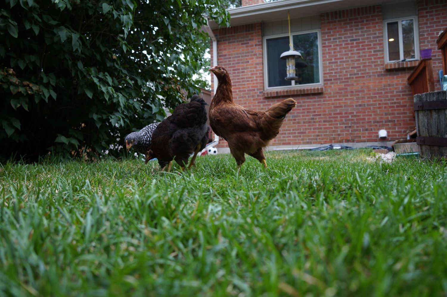 Free ranging in the yard, staying close to their new home: