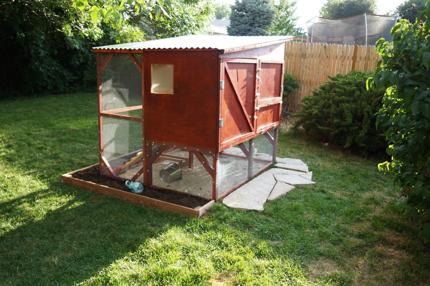 The run is 8' square and 7'2" tall. All treated lumber and 1/2" hardware cloth.