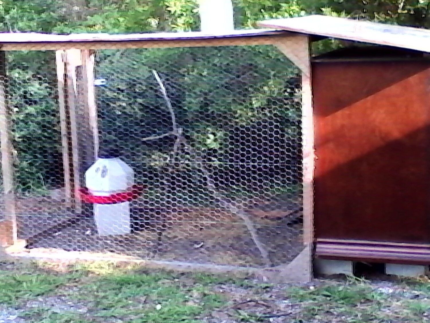 Have cleaned up around the run area since this picture. Inside it pretty much complete and safe.....I have to finish securing some small holes that I think are not predator proof.....that pop door is secure.. all raw wood has at least one layer of poly stain/sealer on it before the rain is to get in here...AND I HAVE a 6 variety pack group of 7 weekers!!!