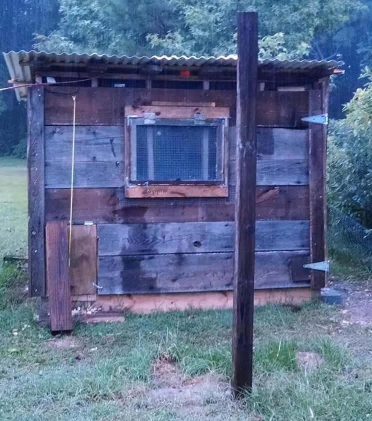 Rain will not dampen my spirits.....a few things to do including the run. But for the most part ... finished !! The run will be the most difficult thing to finish...BUT.....WE NOW HAVE RESIDENTIAL CHICKENS IN MY NEW COOP.....Thank you to my Va. grands, Olen and Scarlet, who have spent the last 3 wks helping in the heat and the sweat....