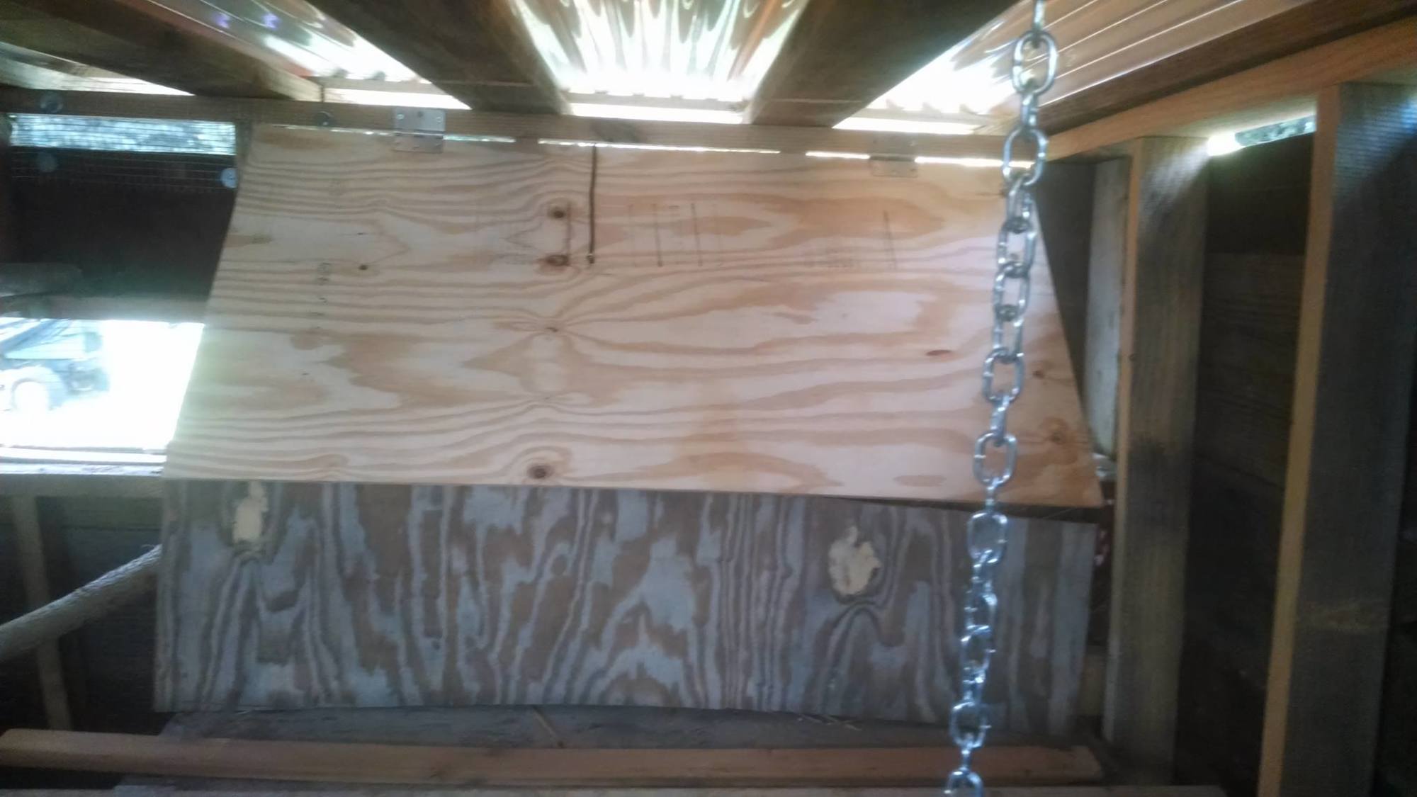 I have the eggdoor across the back of the coop lined with hardware...I used screws/washers to put it in place. Do you think it would be safe to just leave that open at night? I open it first thing in the morning right now. Also, I only got the roosts in yesterday.(a story all in itself) When I went in last night, they were all perched up on the high one so I think I might be safe to open the nest boxes. Thought about making curtains and put them across all but one. I really need to start work on the run but I pushed it yesterday and I'm give out. The really need to get out of the coop.!! Also, I couldn't get the sand right away so I put shavings down...hate them. Love my sand!!Neither of my children have given me grandkids - they're too old now and no adopted GKs either - so I feel for you missing yours!!