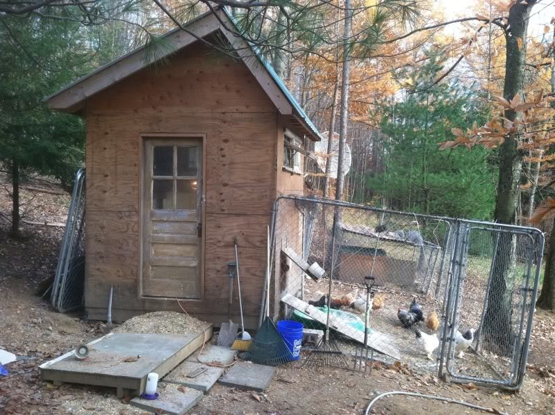 May we see the solar panel setup? I got one from Harbor Freight a couple years ago that I hadn't used yet, and I'm very interested in how you are doing yours. I'll be using a 5$ walmart LED too. I love your footbridge! Did you make that too? Your coop is very nice!Got my coop in useable shape. This is a conversion. The original building is a 100+ year old, old growth chestnut, smokehouse moved to this location from the old family homestead. The windows are from the old farmhouse as well. Took a lot of cleaning to get it ready. Lots of old curing salts. Pressure washed the interior. Still had the brass meat hooks inside. It's roughly 8'x8'. The run is 12'x9' with 1/2" hardware cloth. I also have a 10 slot nesting box we salvaged out of the old family chicken coop. Coop still needs another coat of paint and the wife wants to put some colored trim around the windows. Guillotine uses two pulleys and I used 550 paracord with 1/2" pvc for a handle. It's to the right of the door. You pull it down and hook it on screw to leave it open. Wire in-ground around the outside of the run covered with gravel. I think I'm going to put wire on the ground in back of the coop as well. Already have things sniffing and digging back there but there's a raised concrete curb on the inside so they'd have to pull the boards away. Also has LED solar light inside for after dark inspection. Solar panel and egg access door are around back.![]()