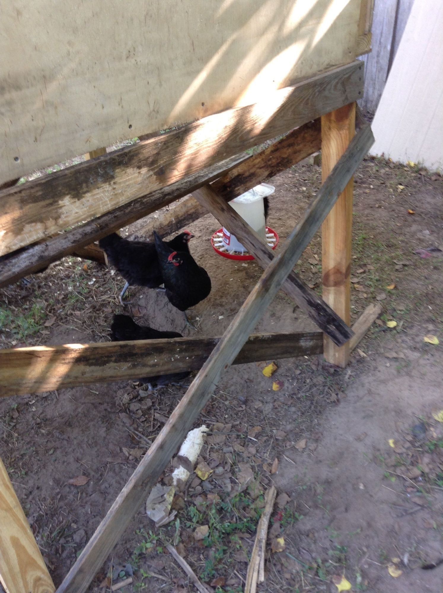 Tarps are the ugliest thing on the Universe but it sure saves our coop from overhead leaks.  We eventually raised it up off the patio on skids to keep the rain from flowing into the coop floor.