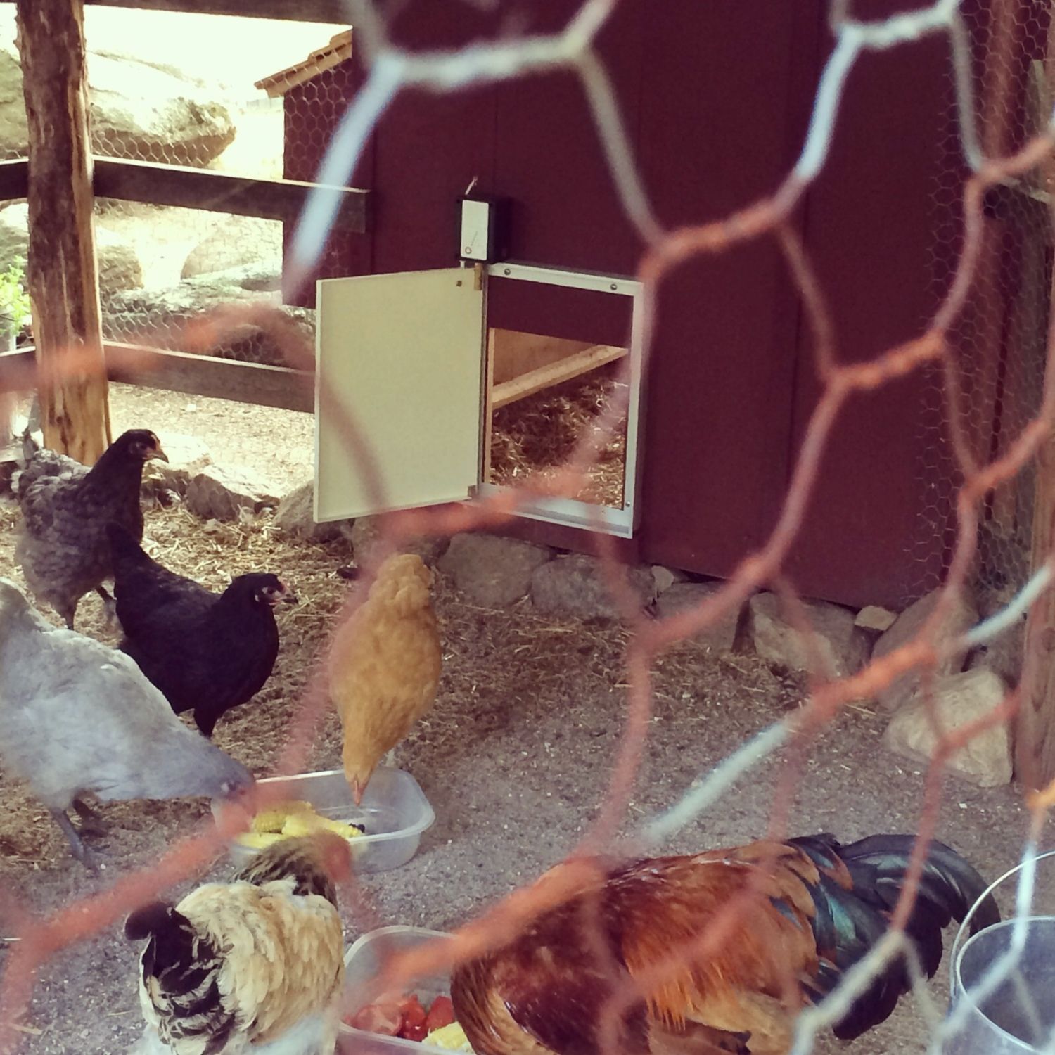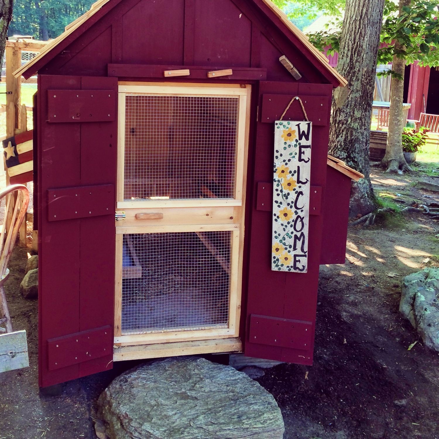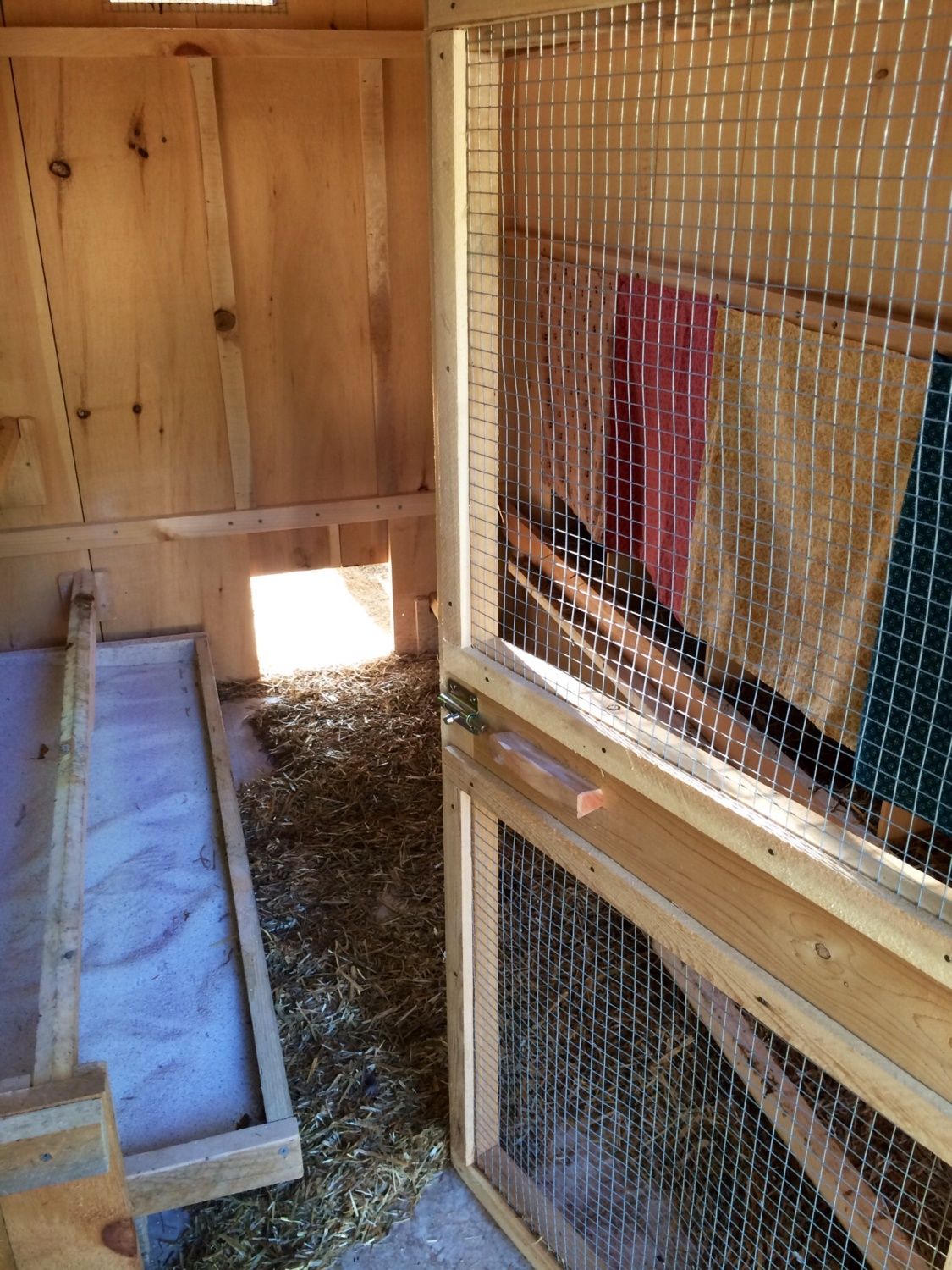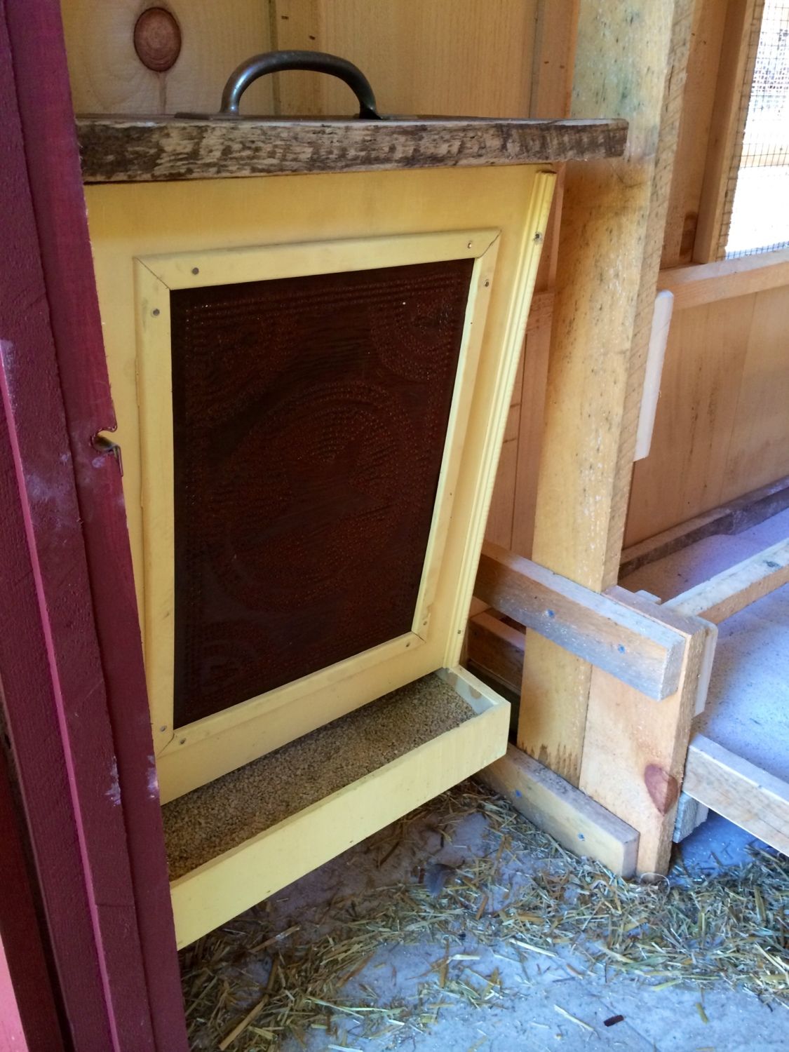 Thought I would share photos of my new coop! I looked on Craigslists for about 6 months (probably longer) trying to find a new coop or even a new one that I liked that would fit in the space we had and finally (on Craigslist) I came across a gentleman who built it for me (at a very reasonable price) in hind site I still wish it were a little wider but I am very happy with my little coop! It houses my 3 hens, 1 silkie, 1 rooster and 4 young Orpingtons. We recently added a window box and an automatic chicken door opener! Saw the idea for the indoor feeder here on Backyard Chickens! This photo is of my new automatic door.