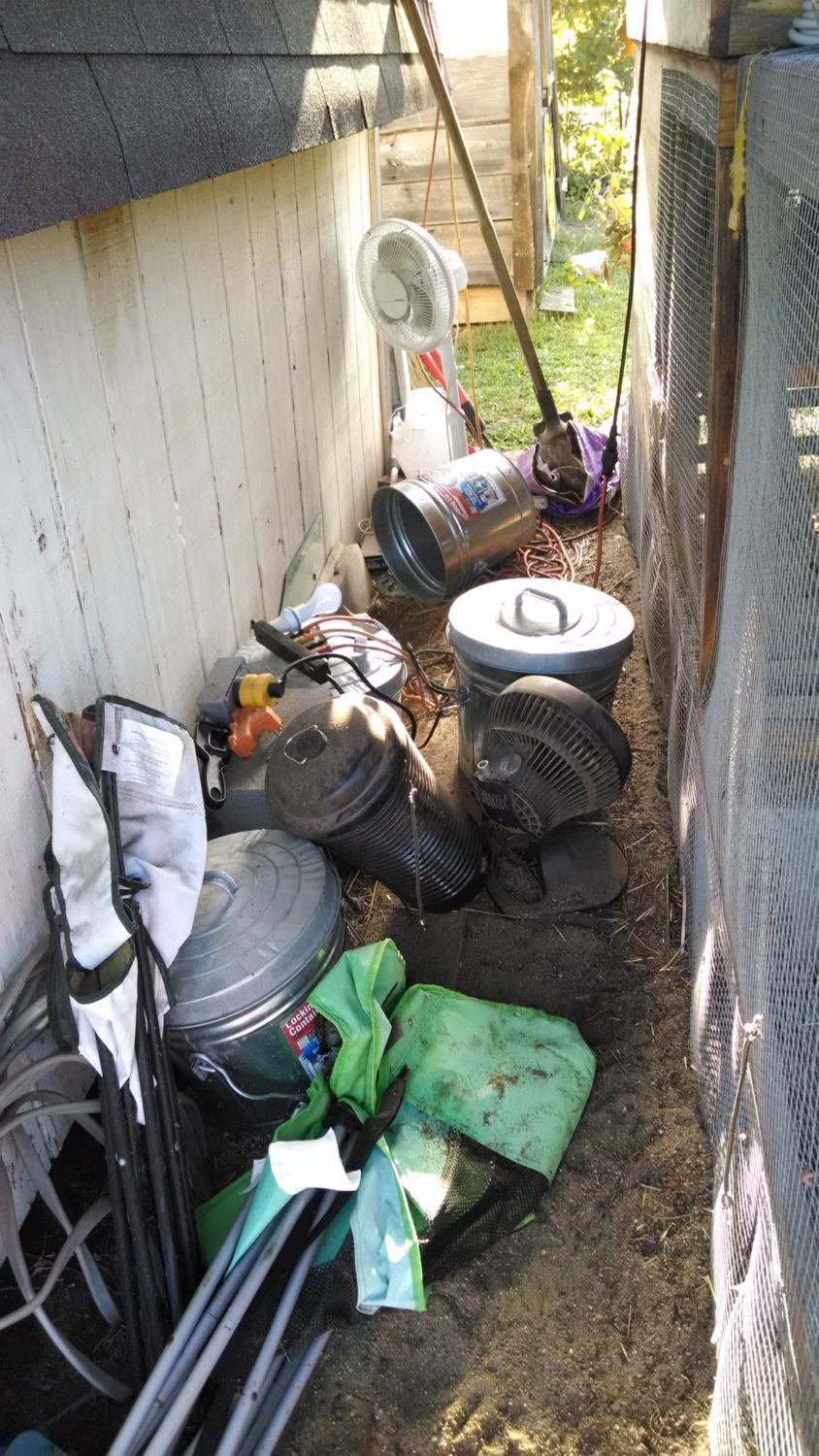 :he Had some visitors last night. They made a mess but all of my ladies are ok. Had to have been a dog of some sort...take a look and see if you see anything you recognize.:hide That feed bucket that's turned over was empty already. They did not get into any of my feed, etc. Broke my two landscape:somad lights.