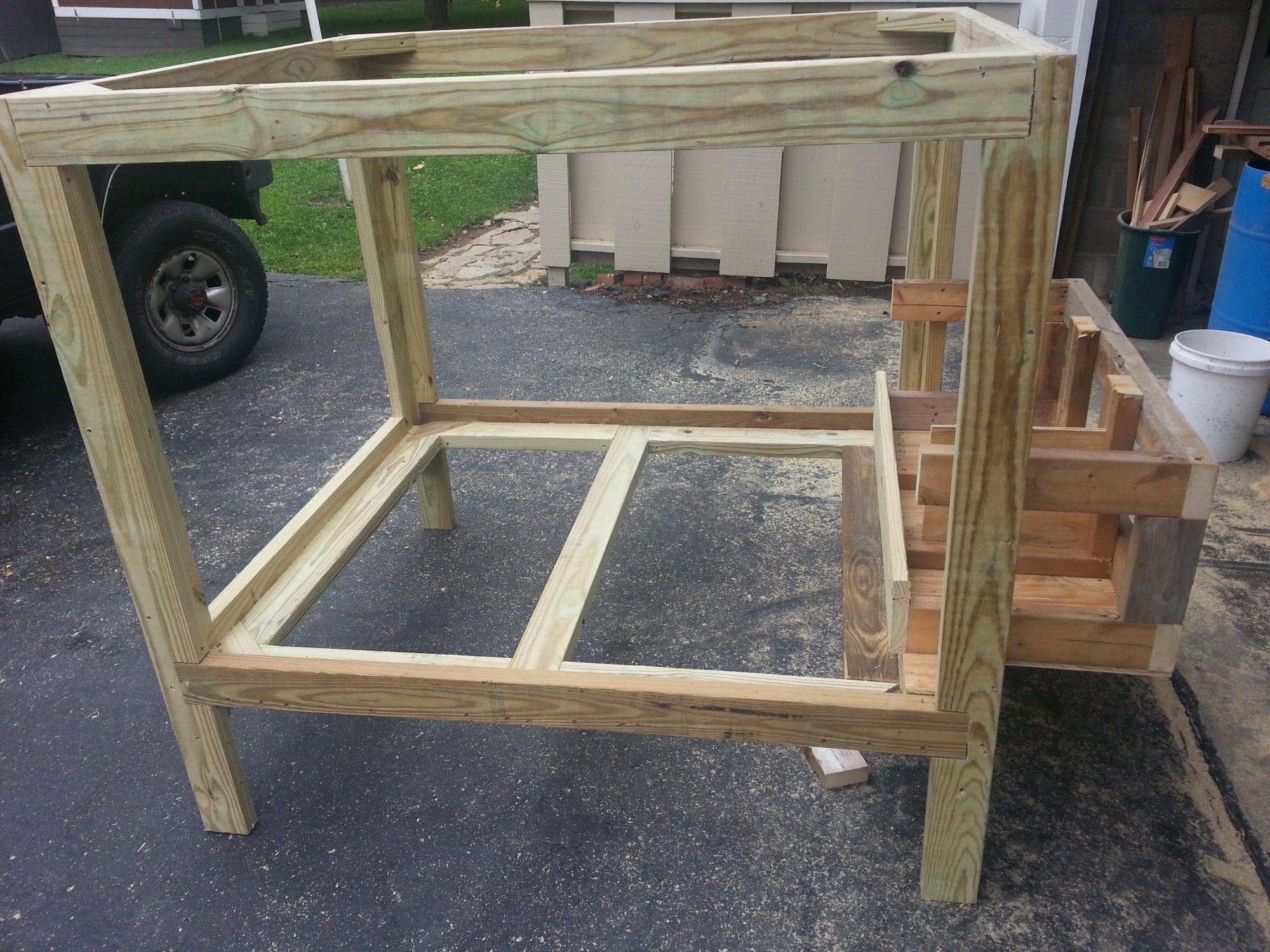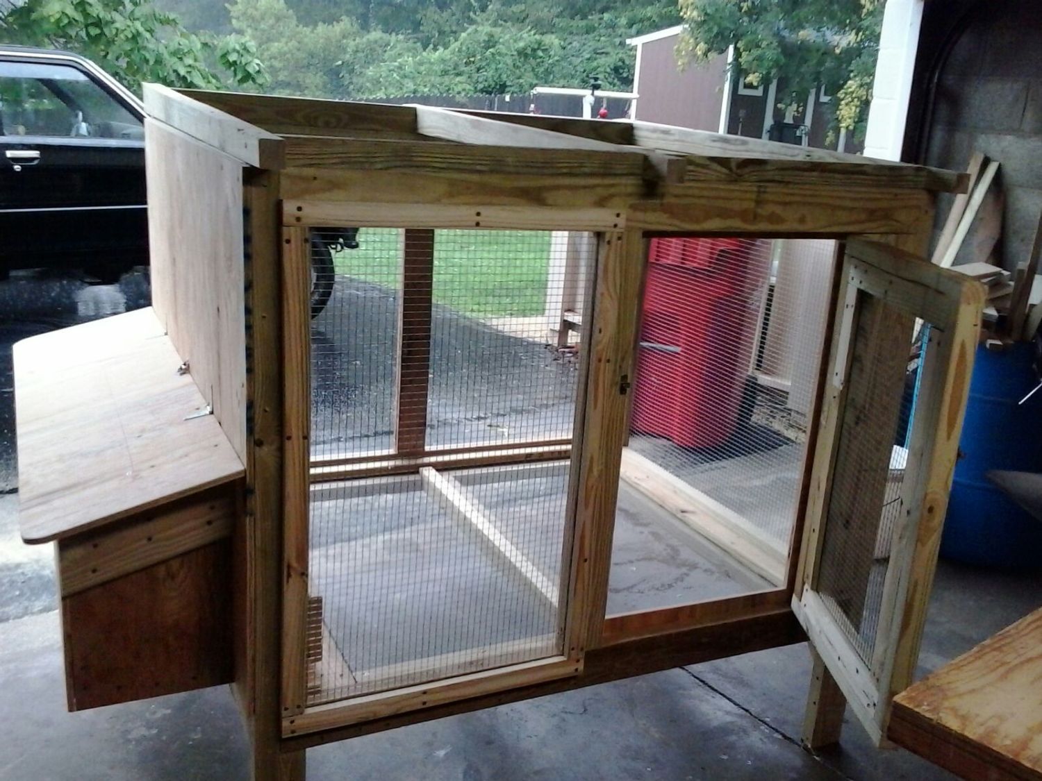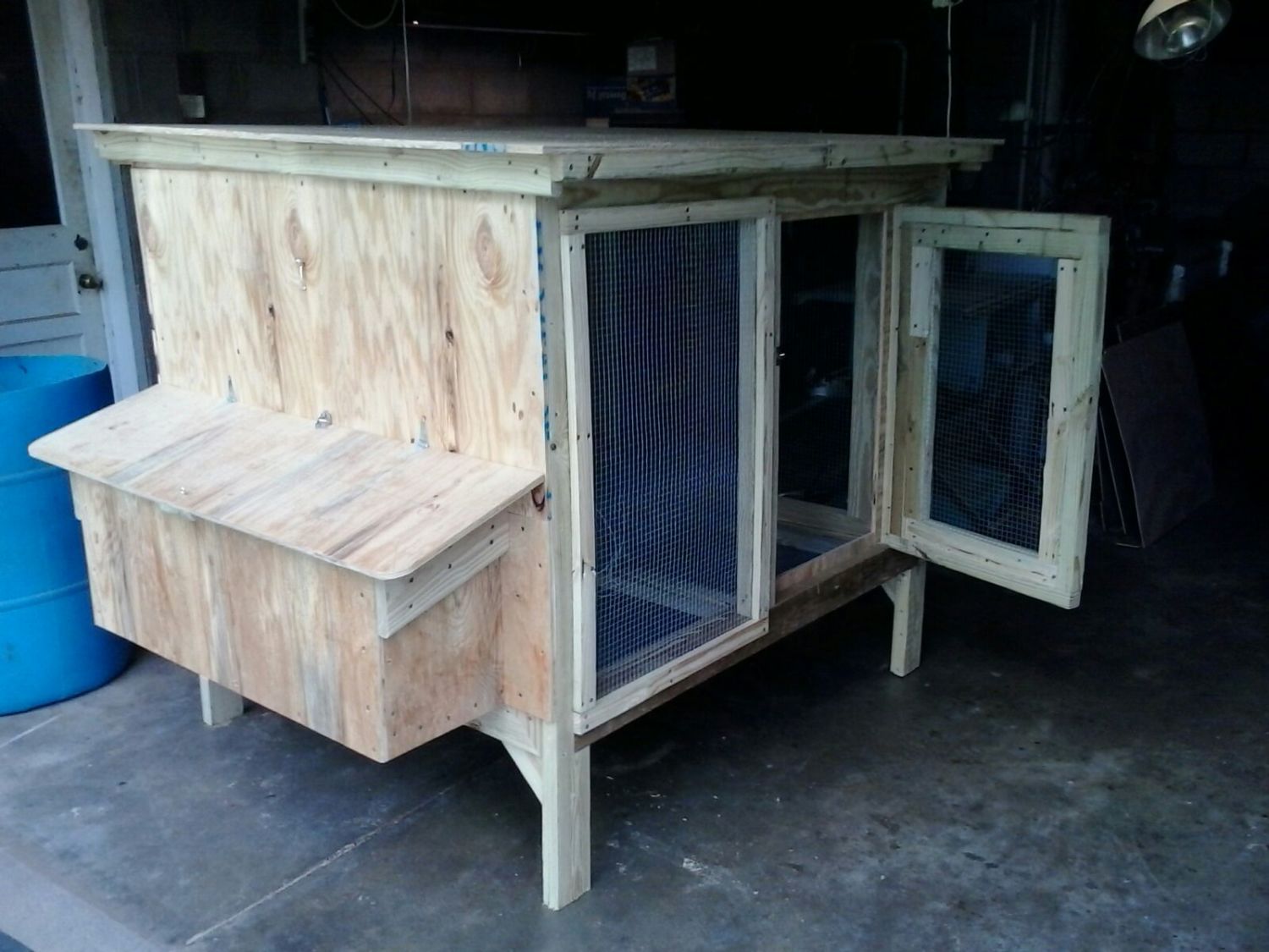 That is a great looking coop! Well designed, but I'm compelled to address a few things for the safety of your flock. First you used 2 x 4" welded wire. As you live in Georgia, aka predator heaven, that wire will do nothing to deter predators such as raccoon, fox, weasel, etc. They will tear through it like it was butter and there goes your flock. Also, with raccoons, which is your major predator there, they will "team tag" with another raccoon and while one is creating the chaos with the birds the other one will sit on another side reaching in and ripping their heads off, which is their favorite thing to do. I would highly recommend re-thinking your wire and switch over to 1/2" hardware cloth everywhere. You should 'apron' it also such as these example pics: