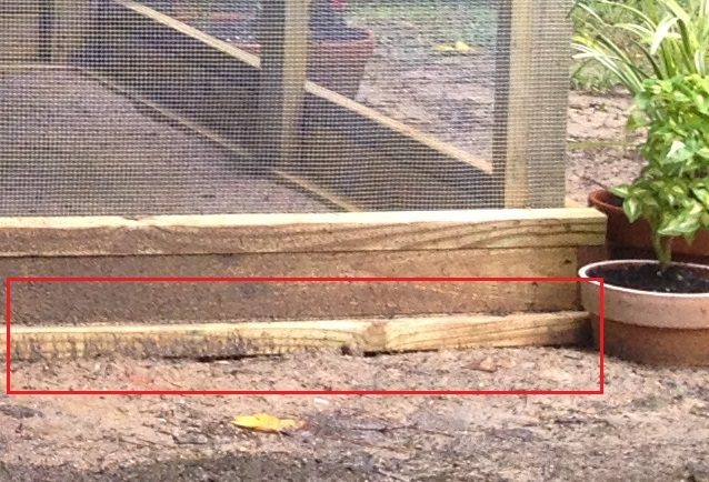 Hi Mother: That hardware cloth apron is more than adequate! I assume the apron is actually attached to the base of the enclosure under the trim board at the bottom. My primary concern looking at the picture... I can see the enclosure sitting on top of some pavers and I wonder is it now or going to be anchored to the ground in some fashion? The reason I ask is because if there are no legs going into the ground for support, & with no lateral/diagonal supports, if something heavy hits it from the side (child or large dog?) the whole thing might/could just fold right over (kinda like a domino falling?) The nails at top and base are not/will not be strong enough against any heavy/determined force.