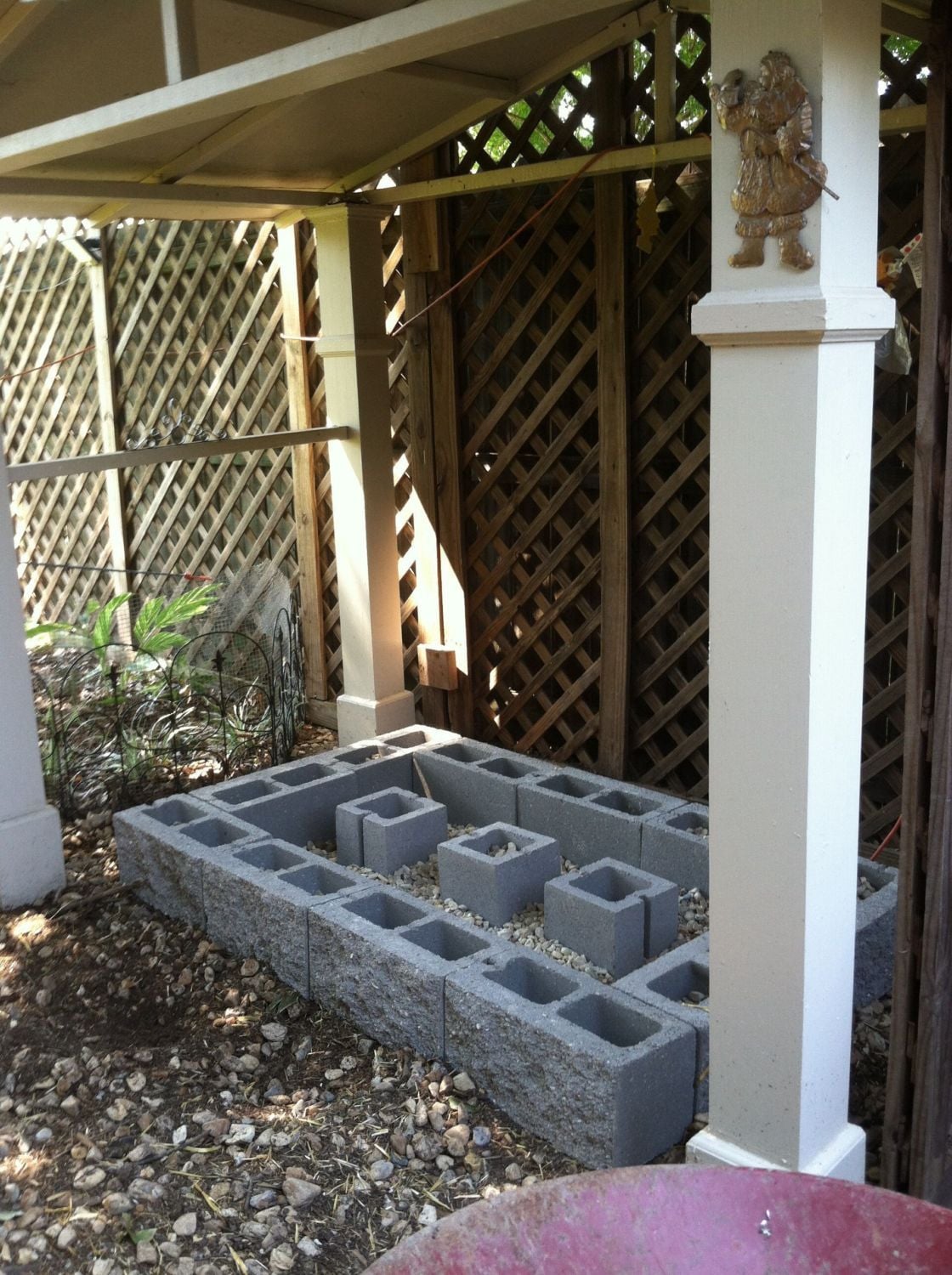 So, I decided to build a coop under the shelter. I did not buy many materials. It was almost built entirely from leftovers I had or materials I found on the side of the road. But I did start with foundation blocks from Lowe's.