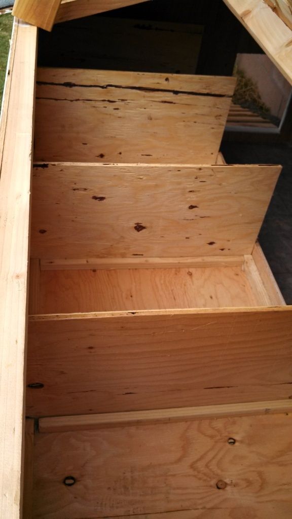 This is our roost. 4 8 foot long. Built the ladder to day and waiting for the paint to dry.