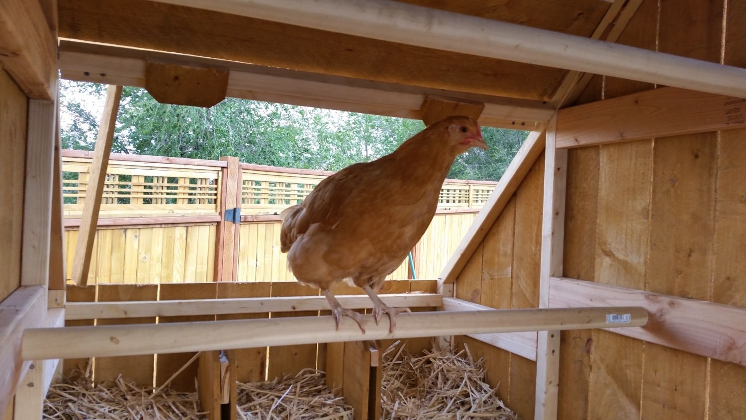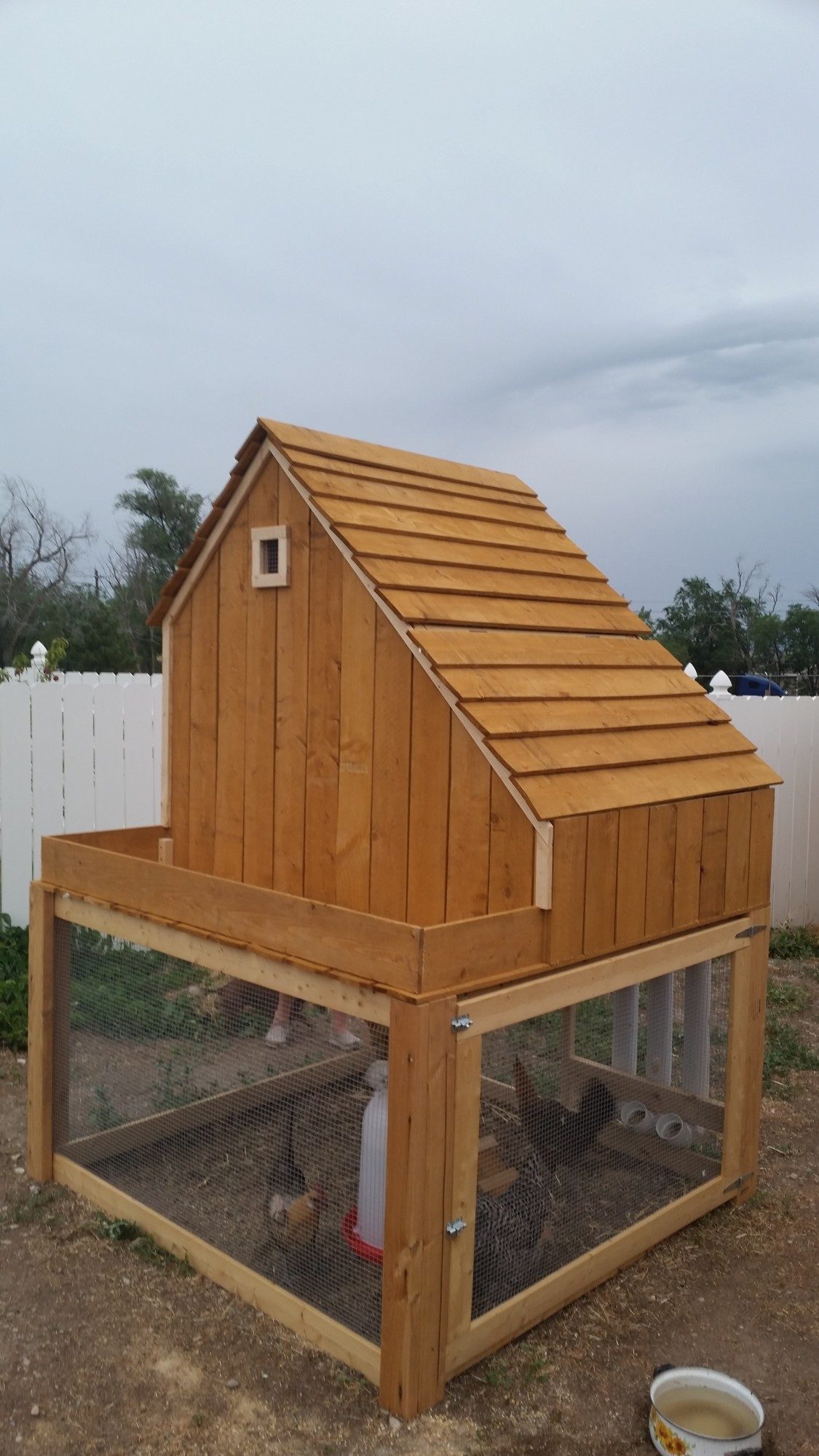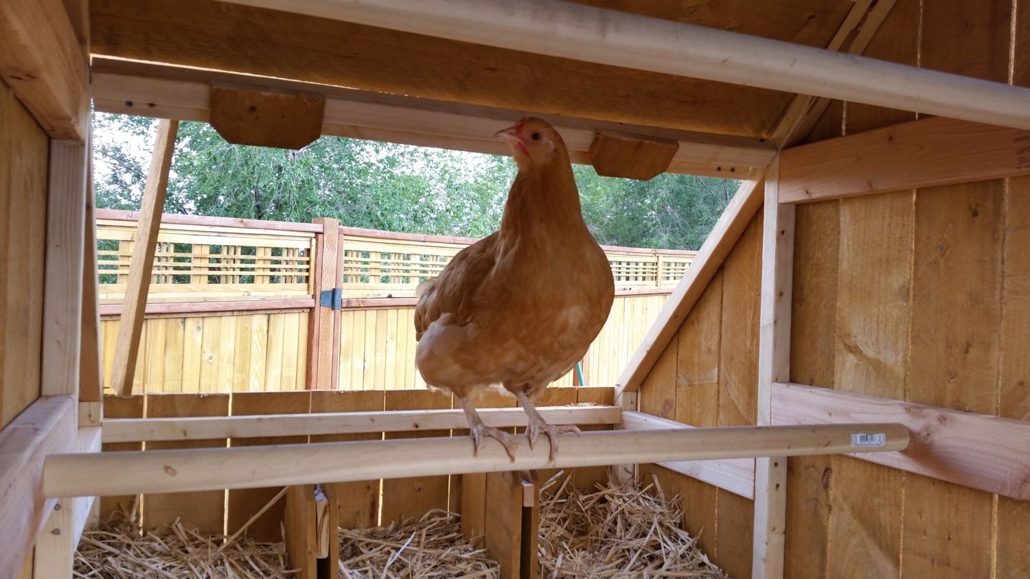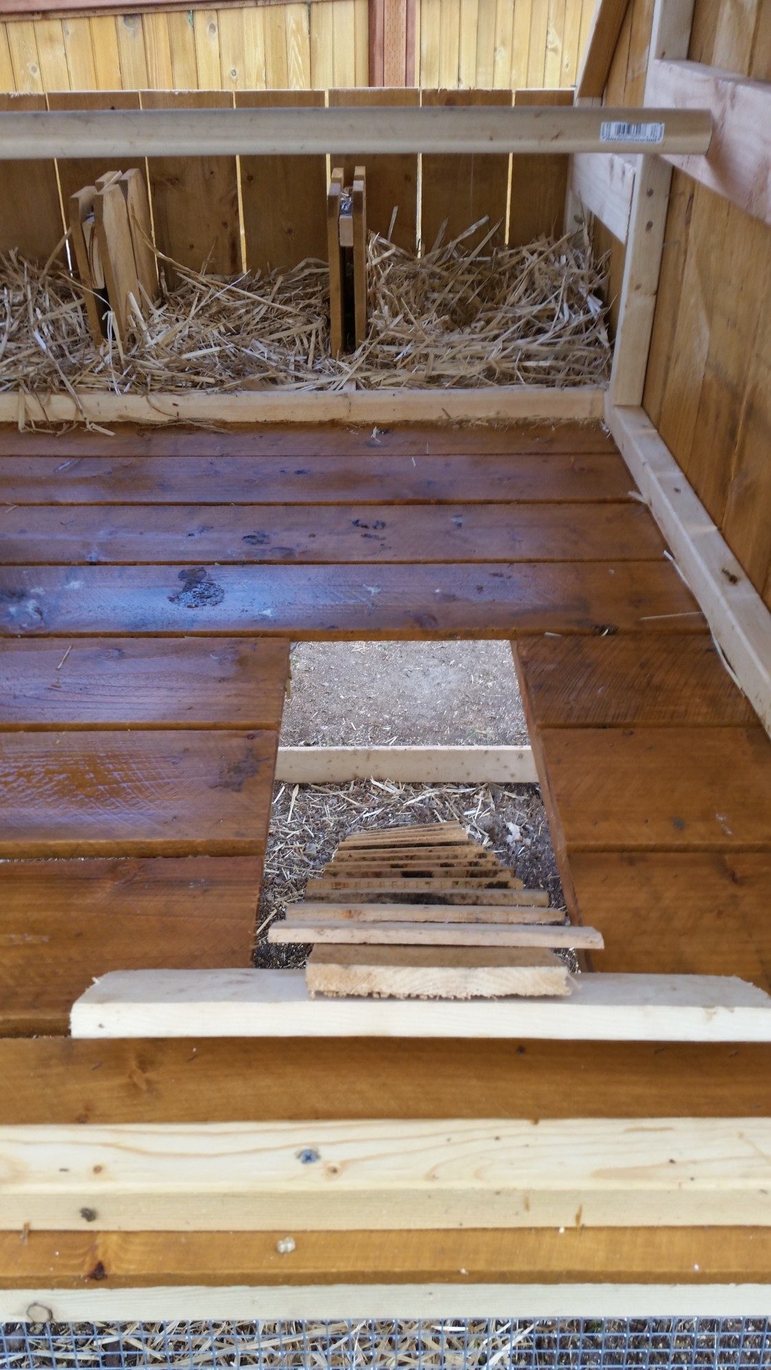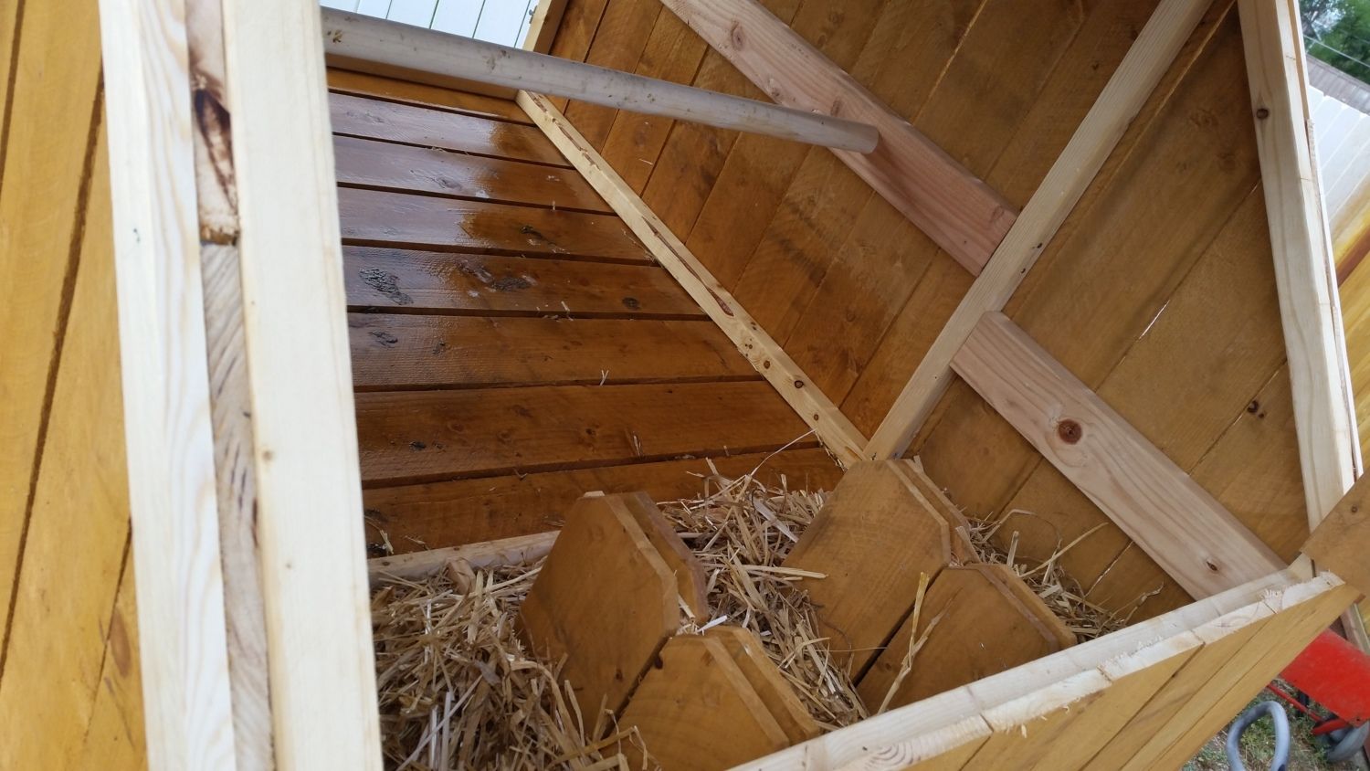 Great update.!!!! Keep posting so we know how you are doing. I'm gonna steal your idea of the wisk for retrieving eggs.I wanted to post an update on our chicken coop in our pasture with our goats. As when I first posted it there was some concern by other members for chicken safety. I posted in May, around page 260. It is now Sept. and no lost or harmed chickens. Our dairy goats and chickens have gotten along without any being harmed. Or attempt to being harmed. I did add a small wired in yard in front of the coop for when I want to feed the hens something, like spaghetti noodles and I do not want the dog or goats eating it. The hens fly onto or over the gate and room the pasture. They also get through the fence and range in our backyard towards our home. We made a wooden 'tree' for them to perch or use to fly out of their yard into the pasture. The only problem we had was some of the hens decided to start laying under the coop. I had to make a tool to retrieve the eggs.
