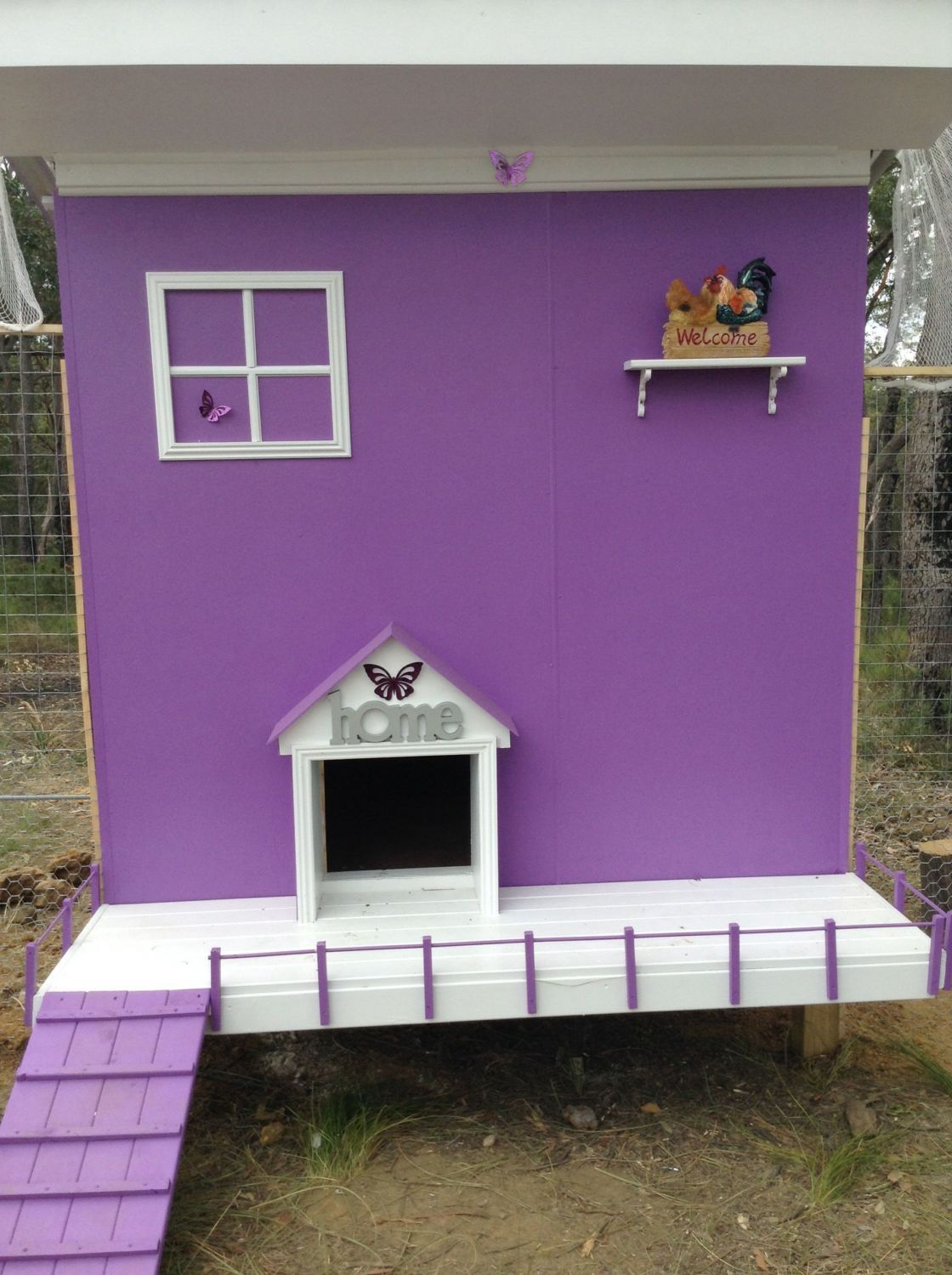 it will be outside raised on stilts so they can hide under it should they wish to.The coop looks sturdily built - a lot better than a pre-fabricated one for certain! Will it be set outside or in a shed? On a cinderblock foundation or on skids? Very attractive exterior.!