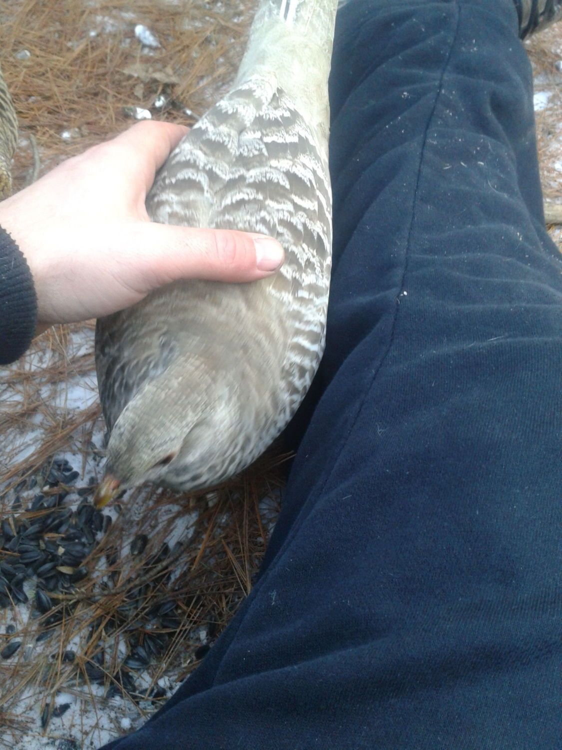 Well, I'd set my sites on doing a good cleaning of the coop.....in fact, its been on my "to do" list for at least a month.(probably since it turned cold) ! I kept waiting for a "warm" day which is ironic right here at the beginning of winter.. You see, I do not do cold very well! Today was the magic day. I have about 3 inches of sand in my coop...to shovel and put in the little wheelbarrel,,,,take it out and down the treeline to the compost area.. In fact it was 4 loads of sand taken out of there.. Swept, refiled water and feed while I was getting it all done. My ladies were so confused.. most were scared to come in there and if they did....it was a real run.;coming in the pop door and out of the people door! LOLOL Only did my EE lazily walk in and stand there...right beside me and watch as each shovel full went in the bucket! If she couldn't see enough, she would get up on the roost where she could look down on evertyhing. It was hard work but at least I had company.. I think if I had done it wrong.........she would probably find a way to let me know. LOL When I got finished taking the sand out, I began moving my new bags of sand in. Now they got rea curious! LOL and yes, my EE was of course, going step for step with me. The others were resting outside..... I got all the sand in and the bags outside and the rest of the flock began coming in with all the curiosity they could muster, They all got about 4 steps inside and realized,,,,it was new sand! 4 of them (38SL and 1 RSL), immediately few up to the roost and one was over at the egg boxes. It was very obvious they did not expect new sand! I thought I was going lay down right there and roll in that new sand.. I laughed until I was coughing.. I talked to them but they ignored me! But in the morning, all that sand will be completely leveled...! I threw a few BOSS around so they will be doing the scratching around. In this pict, these 3 ladies kept looking but would not partake in the new sand between their toes!![]()