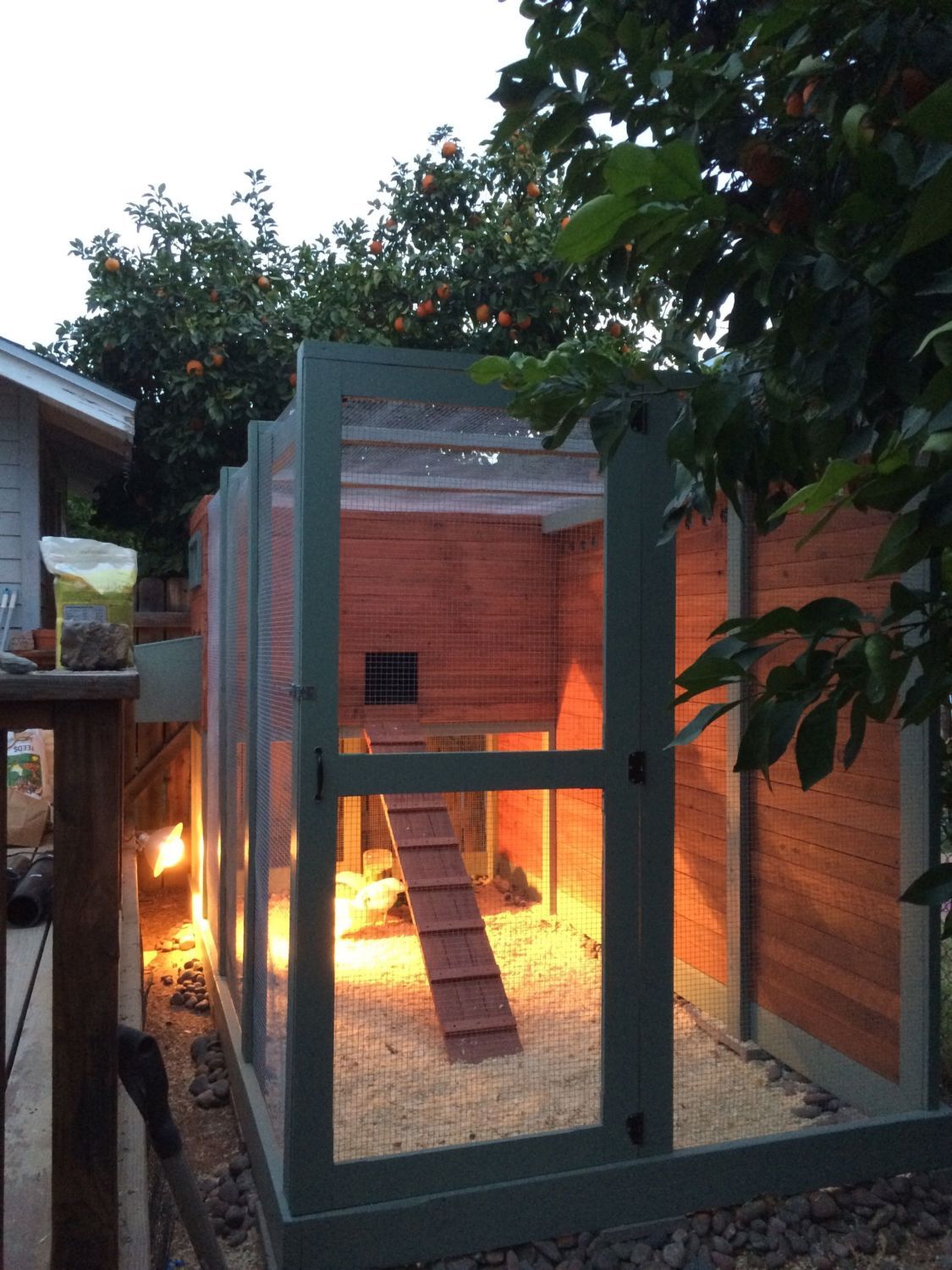 [COLOR=0000CD]The coop is lovely and your neighbors shouldn't mind being your next-door residents. You were worried about the angle of your ramp. We had to replace an old one that was about the same angle as yours but it had steps spaced 3-inches apart. When we made the new ramp we spaced the steps 4-inches apart and the hens took longer to get accustomed to the new build. I wish we had kept the steps at 3-inches apart since they seem to prefer the closer steps for stability, security, and confidence. Sometimes they fly up our ramp and sometimes they like to languish slowly up to the pop-hole so we wil be making a new one with steps 3 inches apart again.[/COLOR]