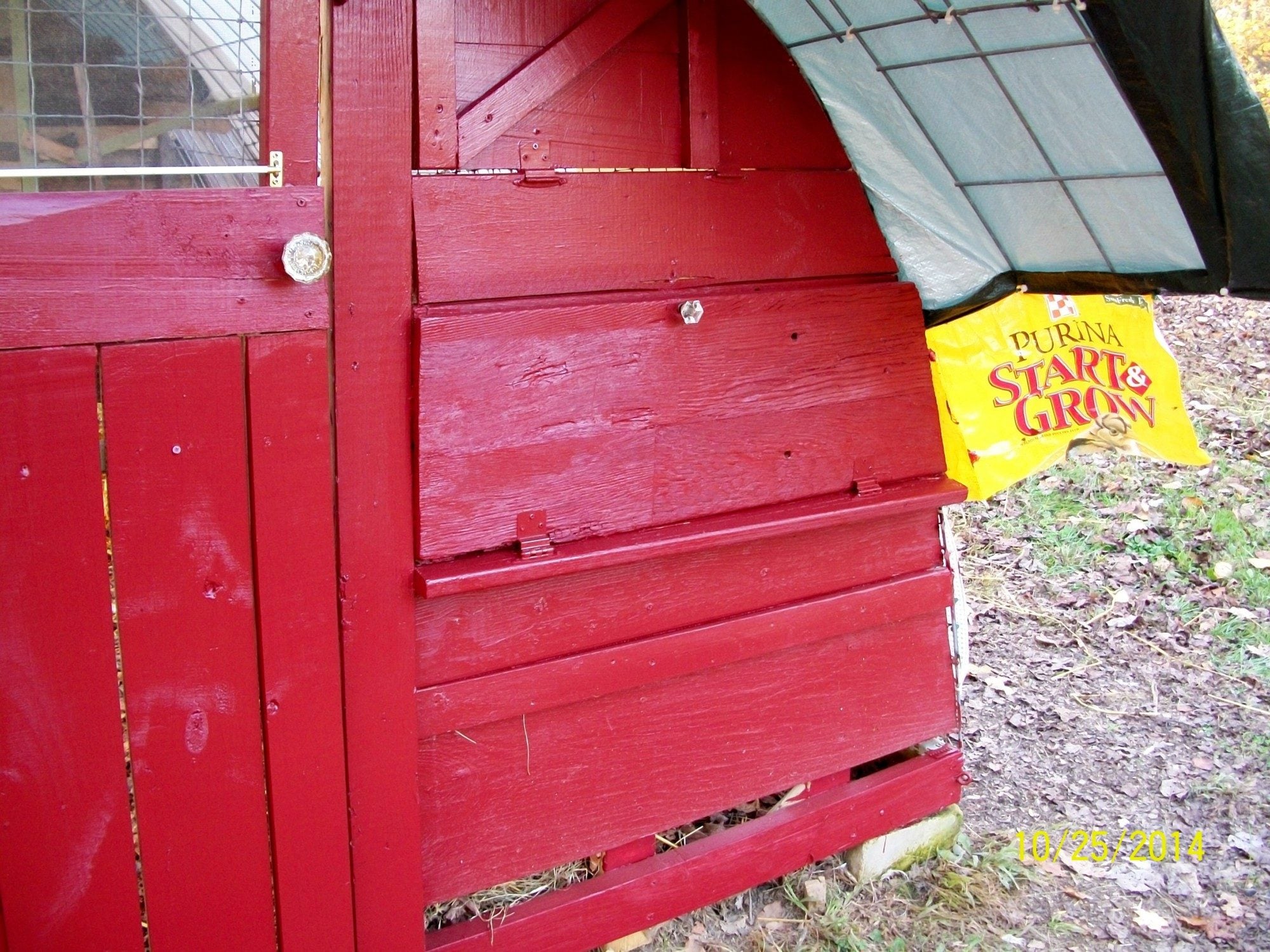 The outside access door on the right hand side of the coop. I had used an antique glass doorknob for the coop door so I found some reproduction glass knobs for the nest doors to match.
