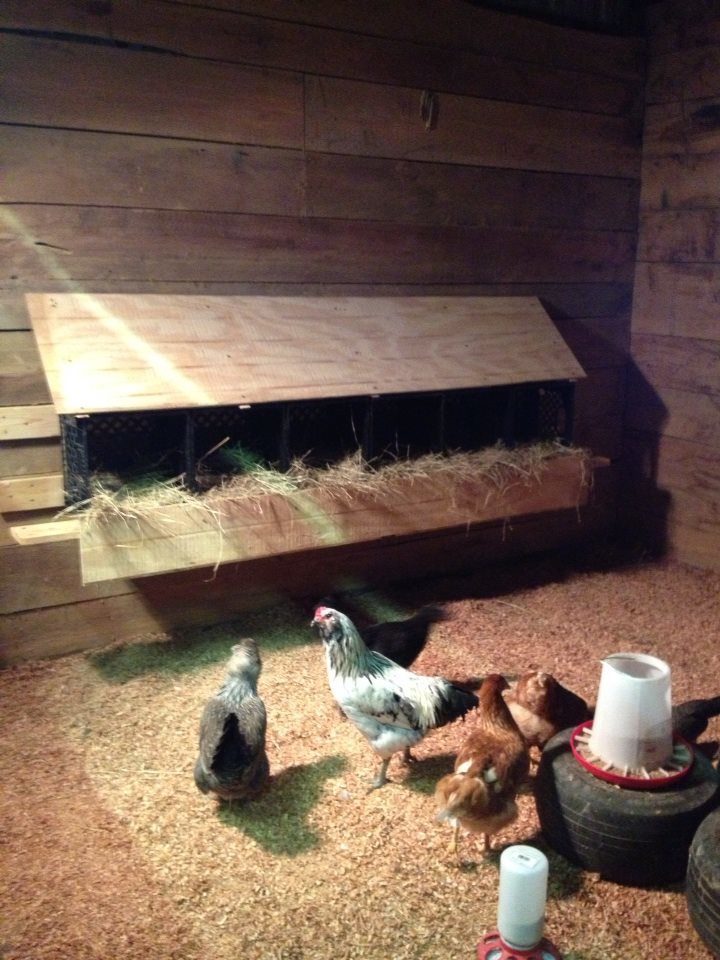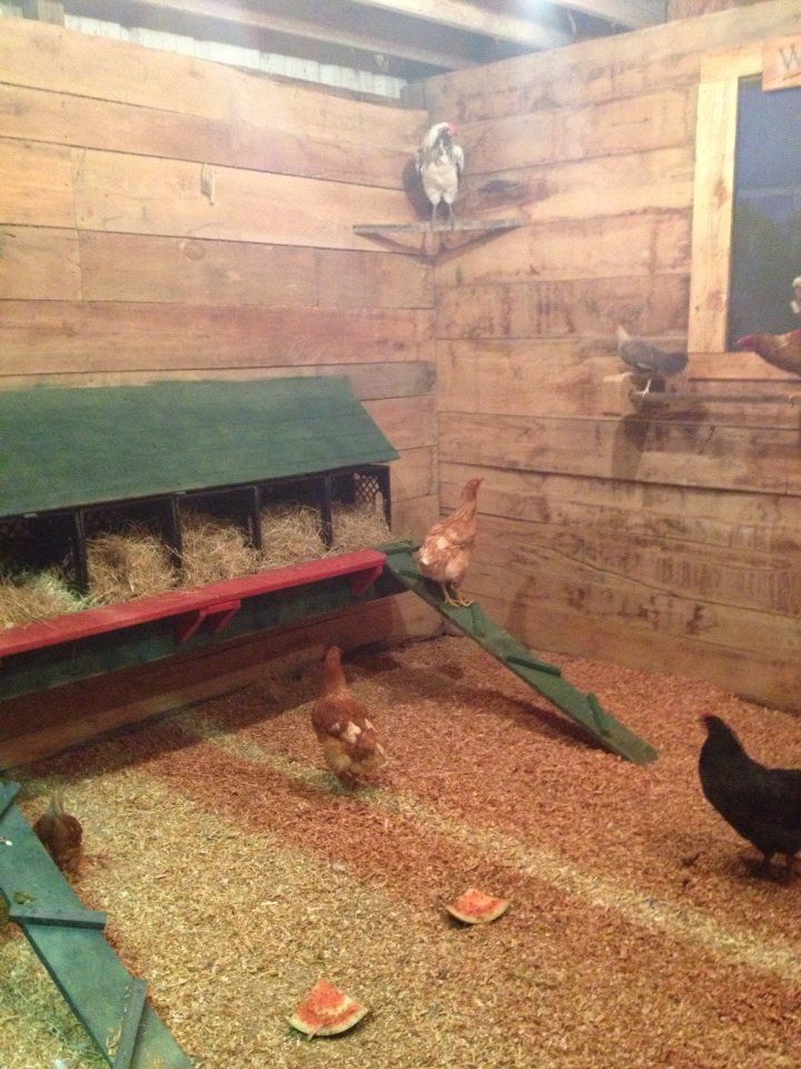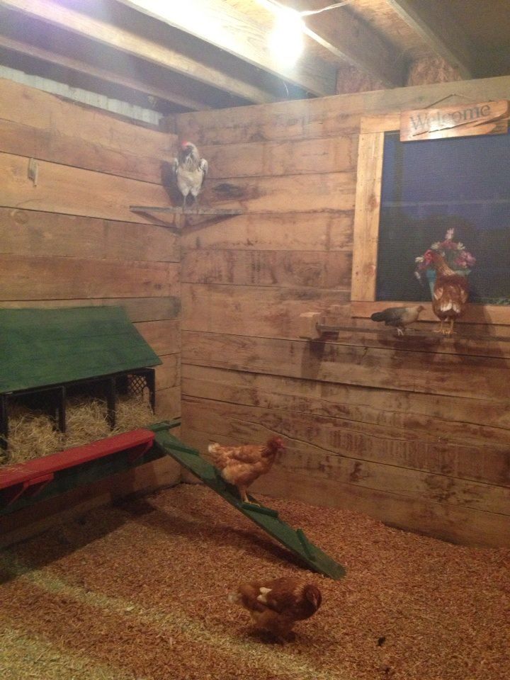 My chickens are in a 12x12 stall in my horse barn. They also have a 10x10 dog kennel that serves as our chicken tractor.
