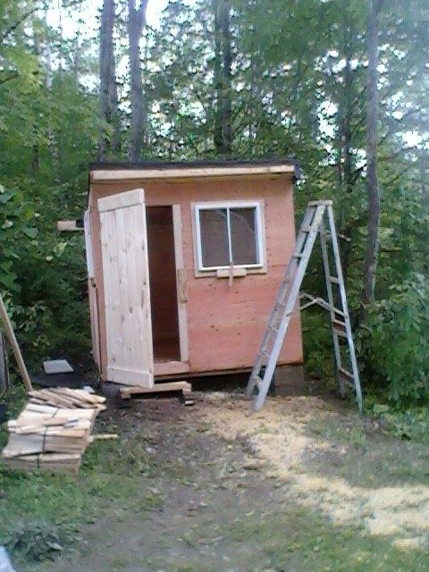 This is our first coop almost done. Mostly what is left is cosmetic, the shakes and trim board and the two top vents ( plus hardware for all the windows and door and outside motion detector light ). The run is out back, in the trees, with half sun, half shade. Coop is 8" by 8' and run is 10' by 20' although the run isn't done yet. So shakes, trim boards on coop, and finish the run and the first coop/run is all done but the painting!!! One down, two to go!!! Oh, and this woodsy patch is kinda an island and separate from the real woods. Best thing is, it's right off my porch, will have electricity and running water! Almost ready to start the others! Oh and I'm going to paint them all, yellow, like my cabin in my avatar, with white trim, to match the surrounding buildings! Oh and the hatching boxes...how could I forget those, will be attached to the left, outside of the coops for easy access and more floor space! We also decided on the galvanized roofing, instead of the composite, mostly because none of us had ever put up a composite roof...the roof is on, just not in these pictures. Hardware cloth will go around the bottom of the coop, so babies can't get under, where I can't reach them!